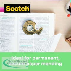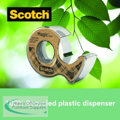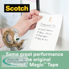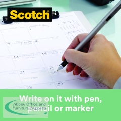 This sticky tape is supporting sustainability, made from 53% renewable material, in 100% recycled cardboard packaging and 100% recycled plastic core. Has the same features as standard Scotch Magic Tape, appearing frosty on the roll and invisible when applied. Suitable for writing on it with pen, pencil or marker. Supplied in a single roll of tape on a dispenser, measuring 19mm x 15m.