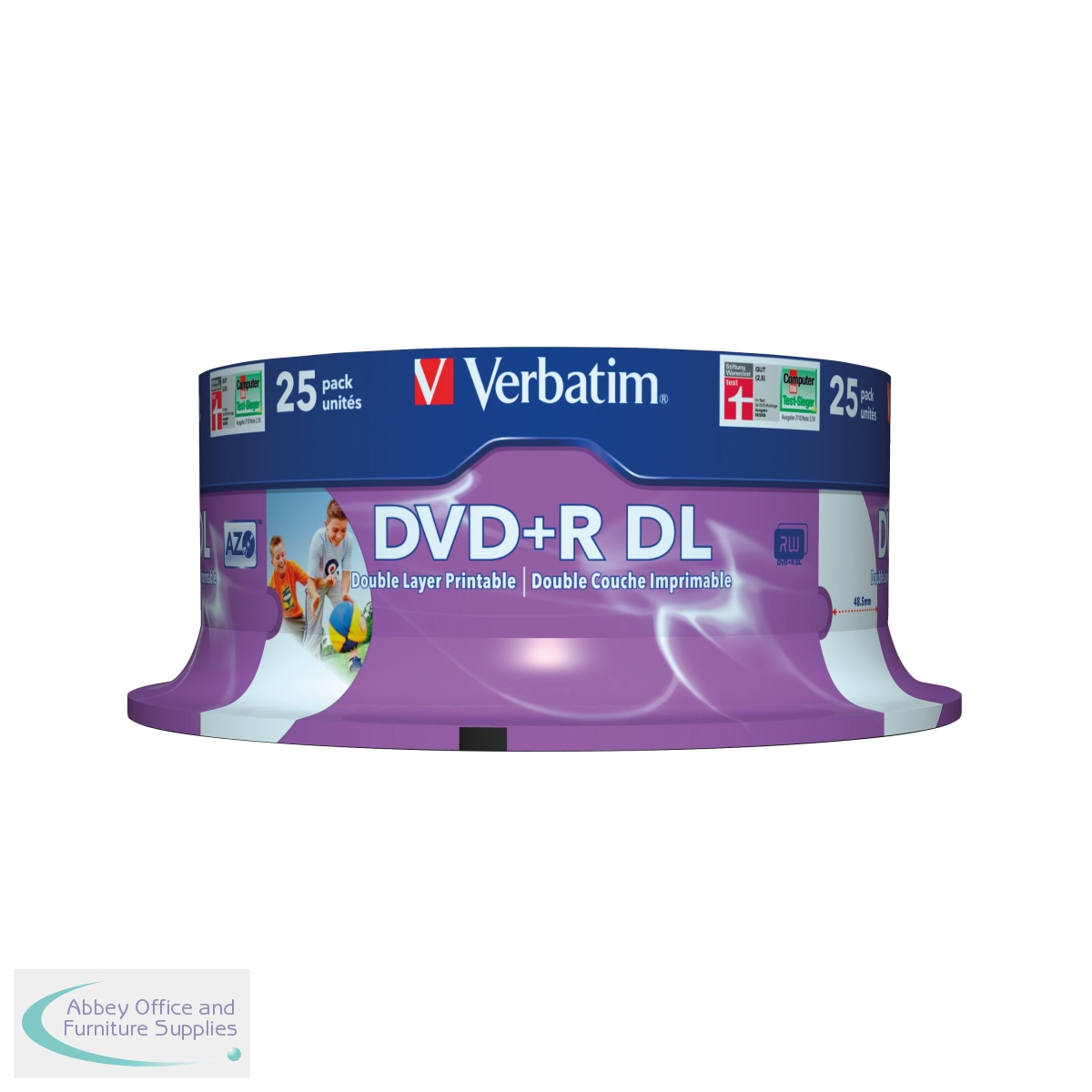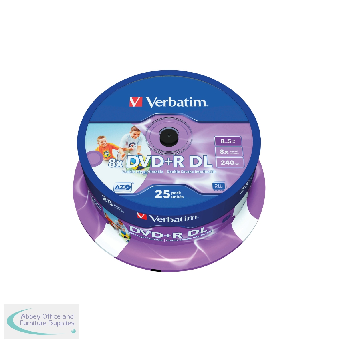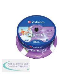 VM43667 - Verbatim DVD+R DL 8x 8.5GB No ID Wide Printable Spindle (Pack of 25) 43667