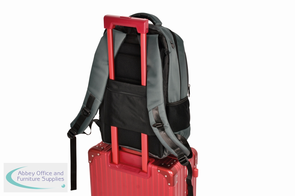 The styish and professional Monolith 15.6 Inch Business Commuter Backpack complete with USB and headphone port. The backpack has a large capacity allowing you to store your laptop, files, folders and paperwork. The bag has side pockets for carrying drinks bottles or umbrellas. Featuring a adjustable shoulder straps, top carry handle and a rear strap for use with trolley cases.