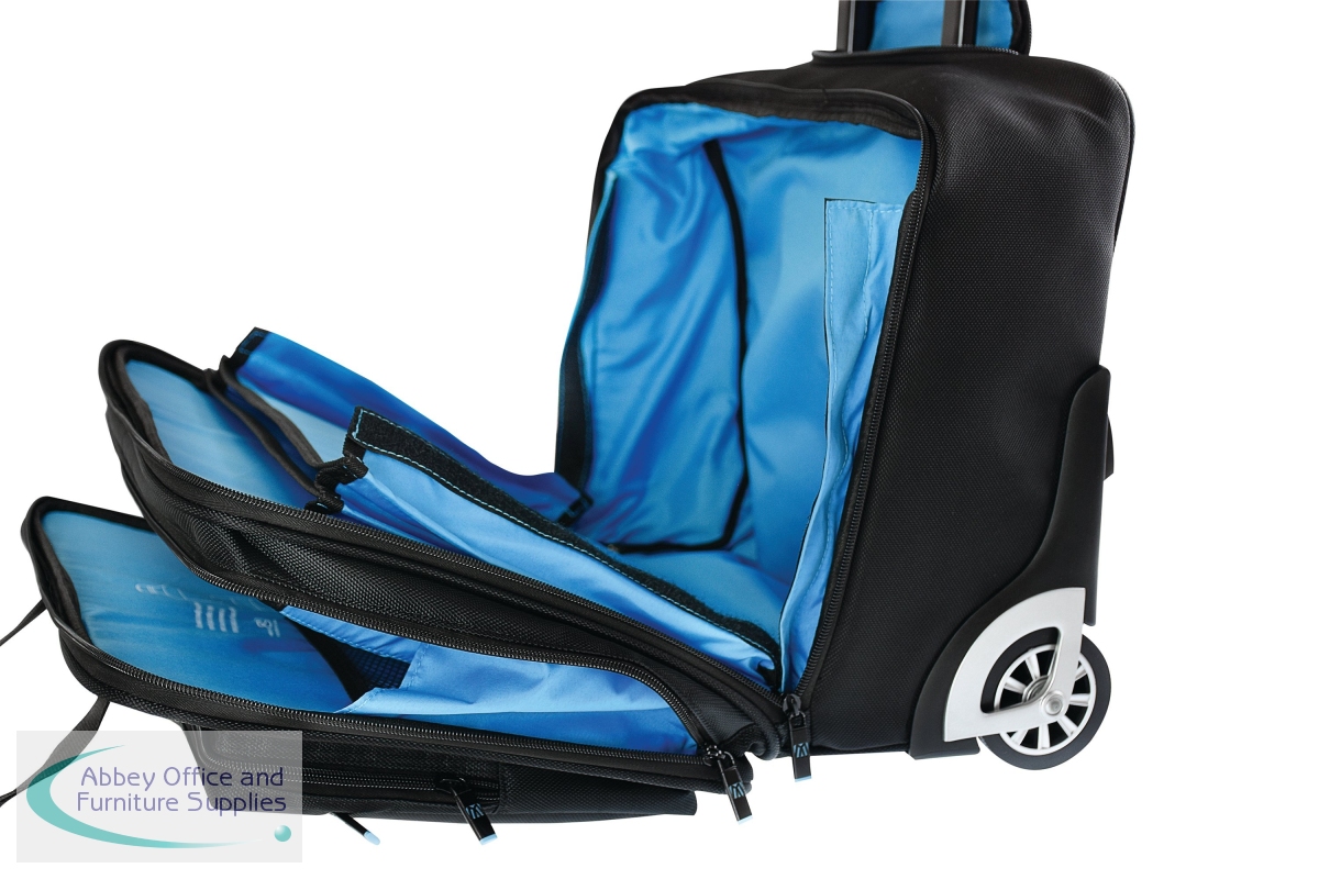 The Monolith Blueline Wheeled Laptop Case is ideal for travel and can be used as hand luggage. The backpack is expandable to fit everything you need when travelling. with numerous pockets for storing all your requirements for hybrid working. Use as a case with carrying handles or as a wheeled case with a lockable trolley handle, durable trolley wheels.