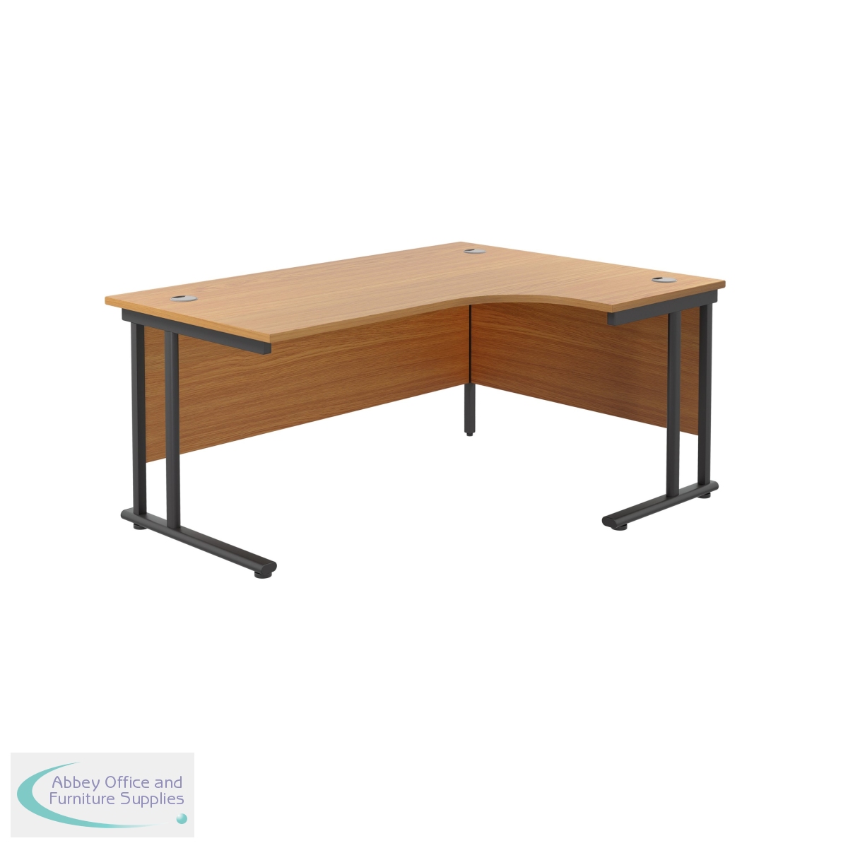 Suitable for a variety of office environments, these Jemini Double Right-Hand Radial Desks can be positioned together to create various configurations. Providing easy working access to a computer while offering ample desktop space, this desk features dual 80mm cable management ports to keep workspaces tidy and free from wires. The desk includes a modesty panel as standard and the double upright cantilever legs offer improved stability.