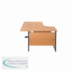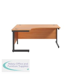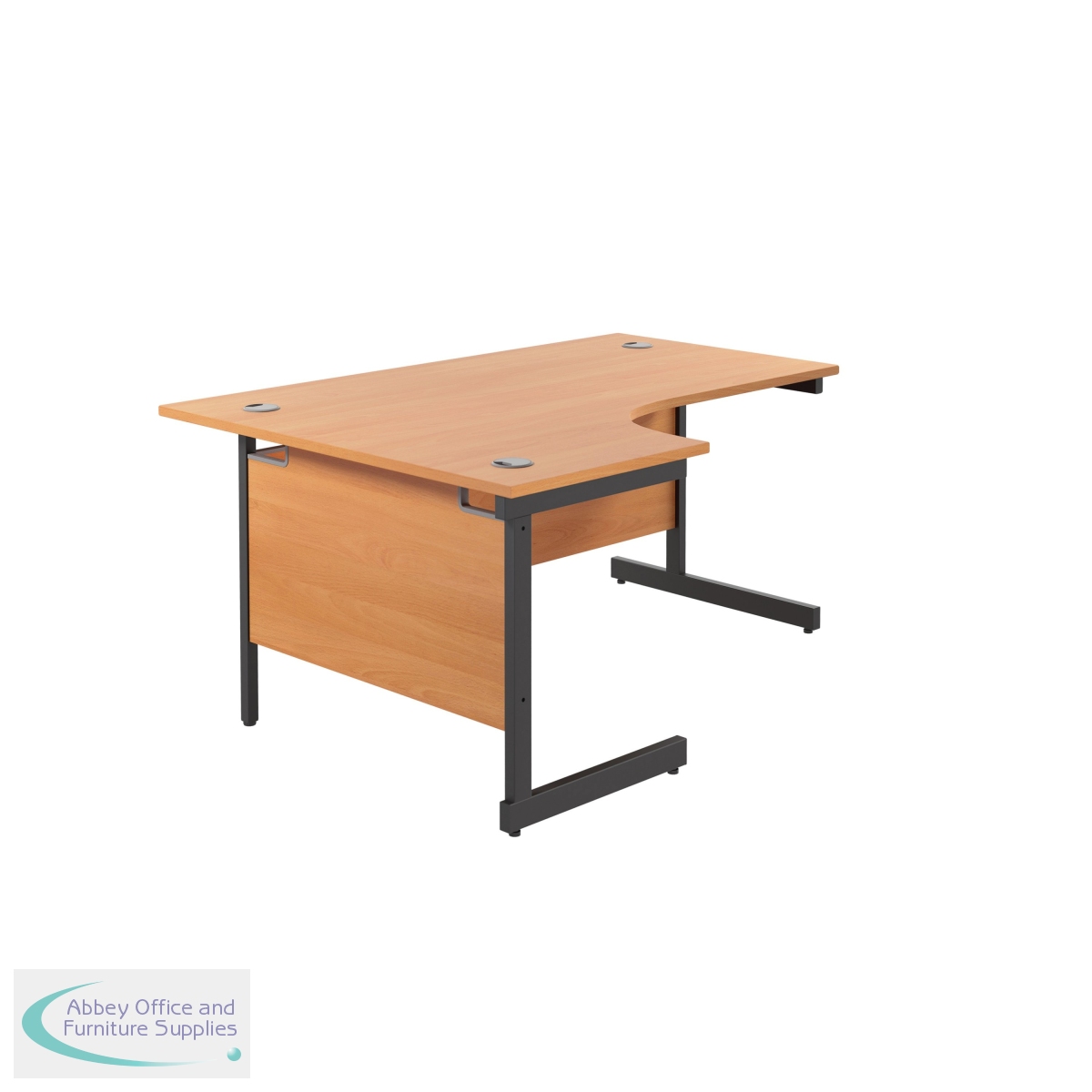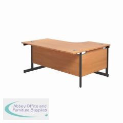 KF819615 - Jemini Radial Left Hand Single Upright Cantilever Desk 1600x1200x730mm Beech/Black KF819615