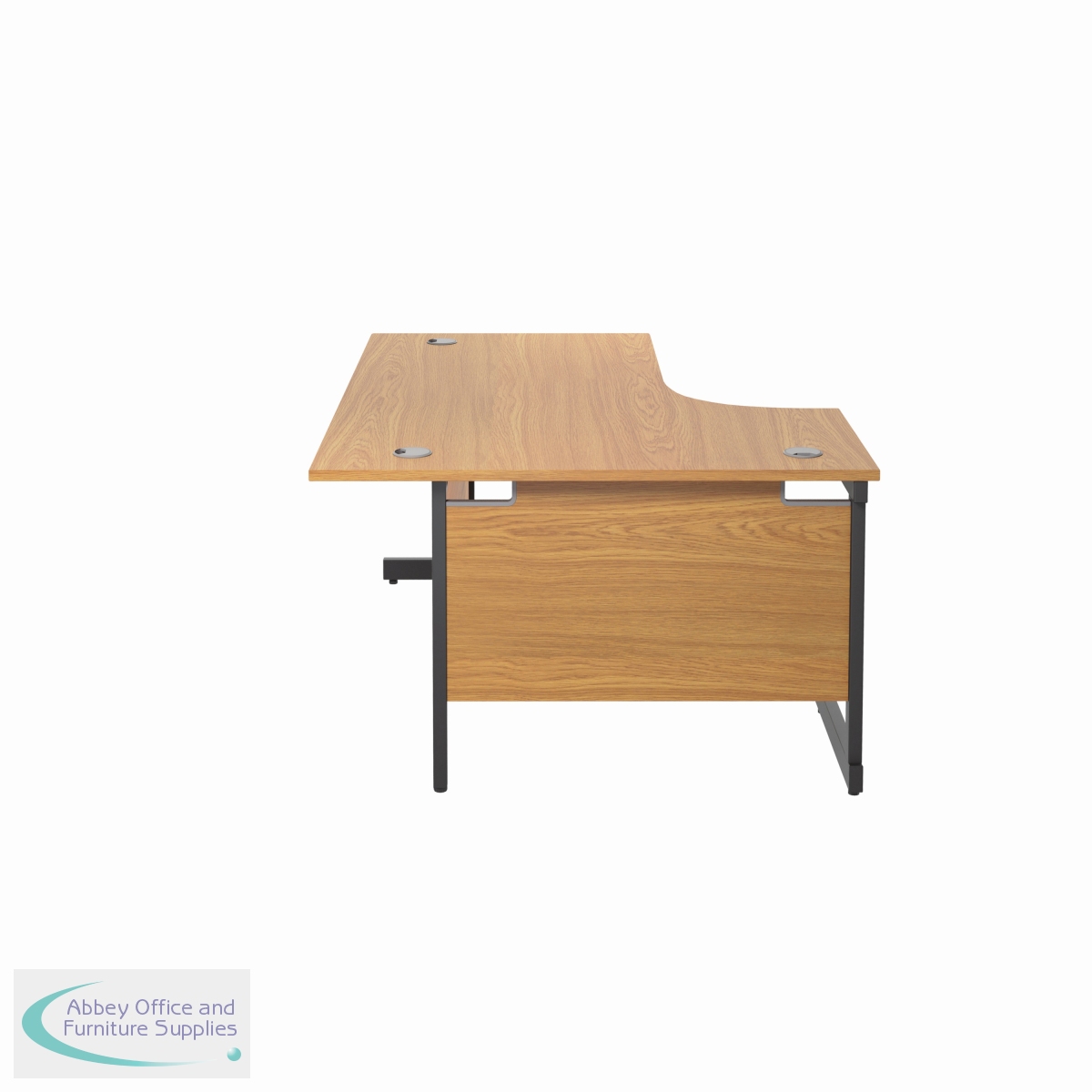 A versatile, single upright radial desk, ideal for easy positioning of a PC as well as leaving ample desktop space, for use in a variety of office environments. The Jemini radial desk features a strong cantilever frame a sturdy and stable workstation. Featuring a 25mm thick MFC desktop with a 2mm edge band. 80mm dual cable management ports to keep wires organised and tidy. The modesty panel is included as standard. This desk can accommodate a single pedestal beneath it.