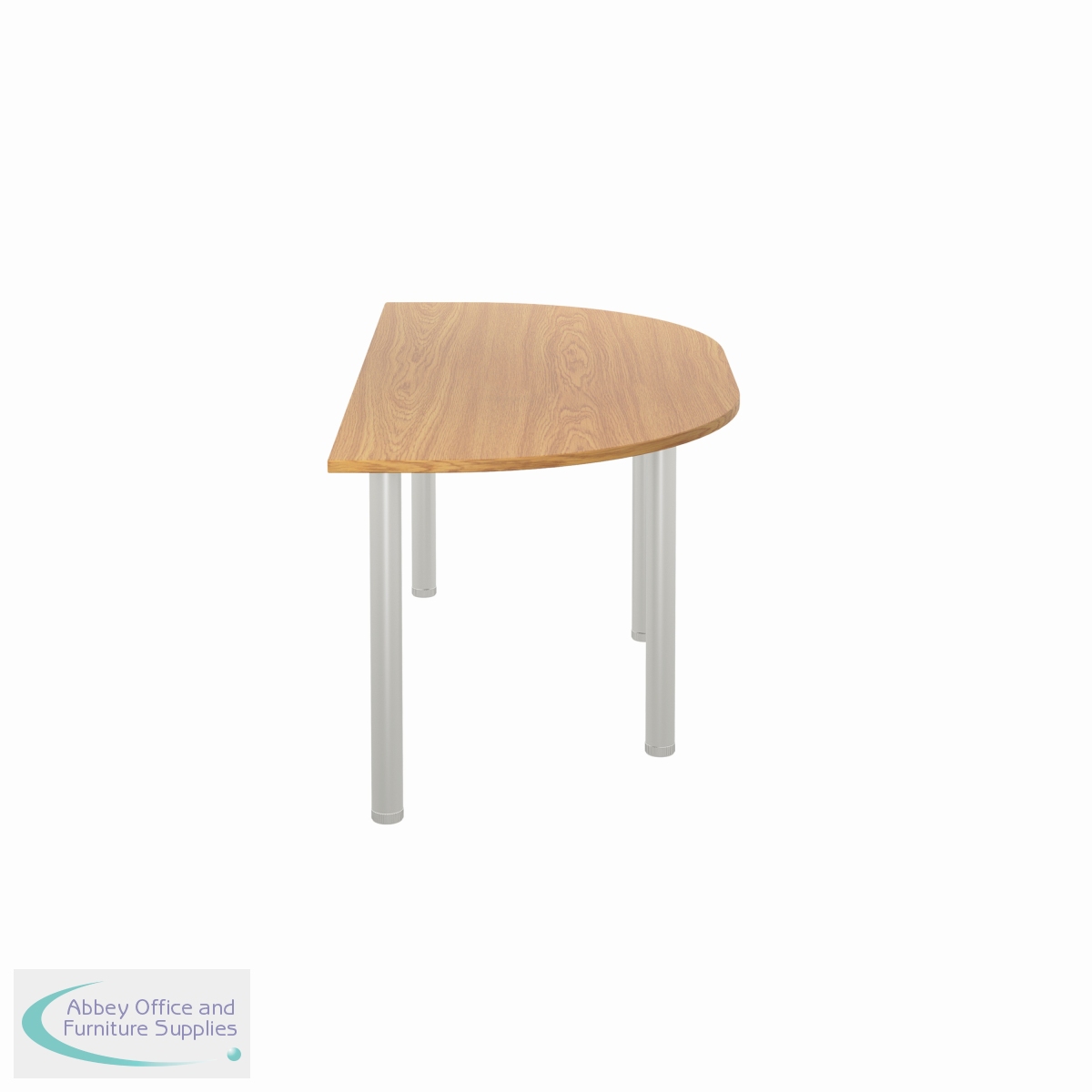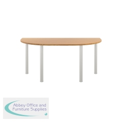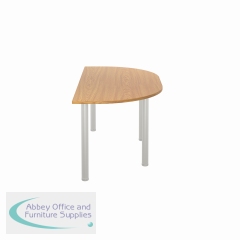 A versatile, semi-circular multipurpose table, ideal to enable you to make the best use of your space. The Jemini semi-circular table is supplied in a flat pack construction and is ideal for a variety of uses; the board room, meeting rooms, library or for additional desk capacity to complement The Jemini furniture range. A sturdy table with an 18mm MFC desktop and 2mm edge banding. Metal legs for stability.