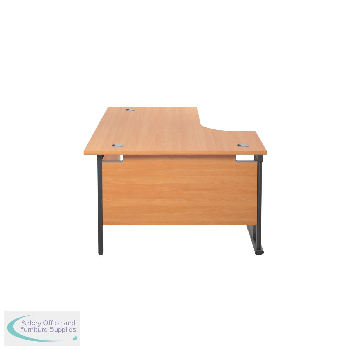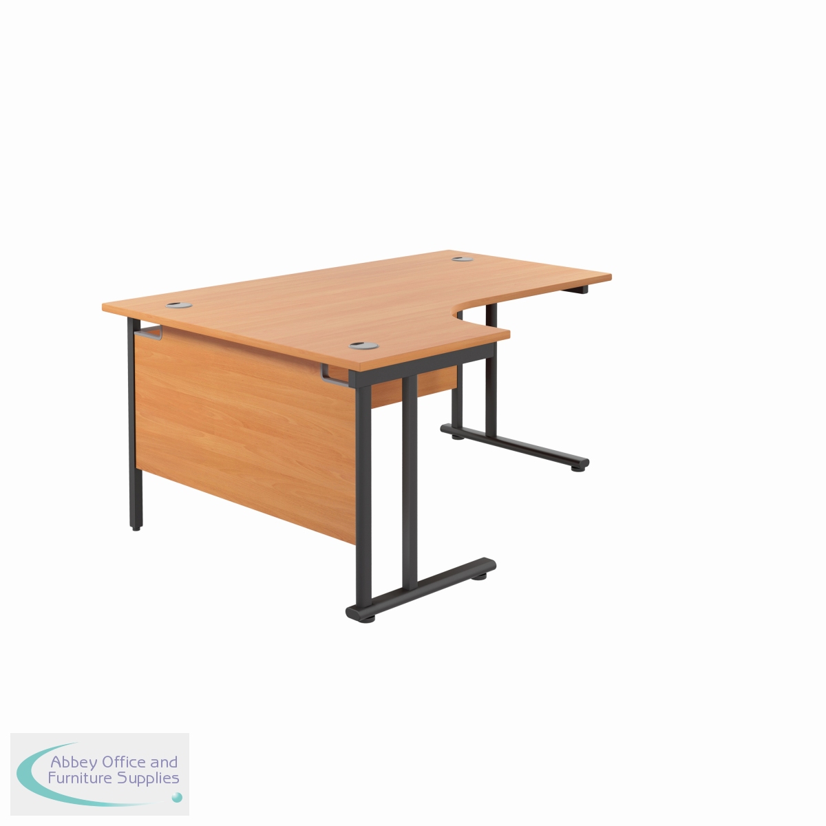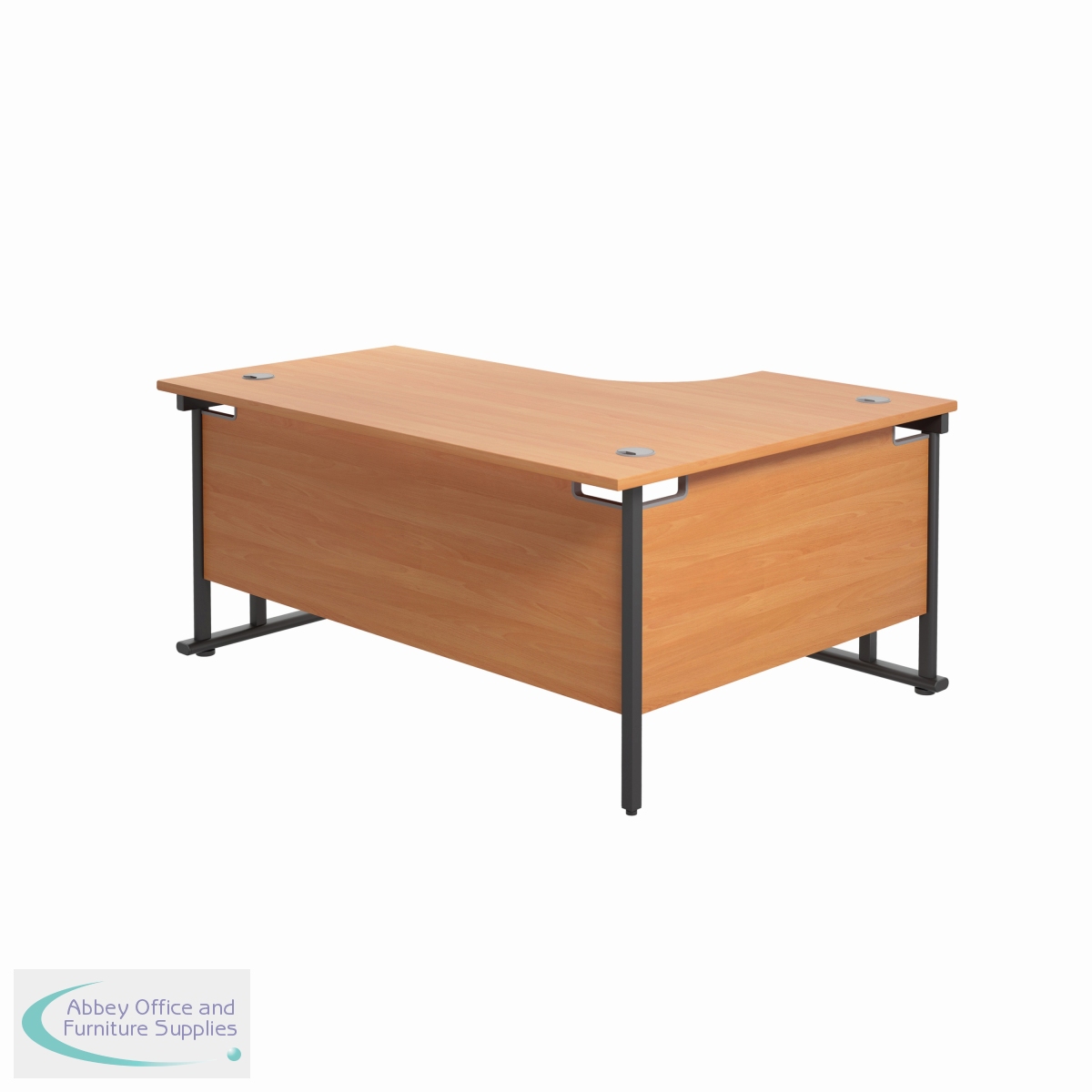KF820376 - Jemini Radial Left Hand Double Upright Cantilever Desk 1600x1200x730mm Beech/Black KF820376