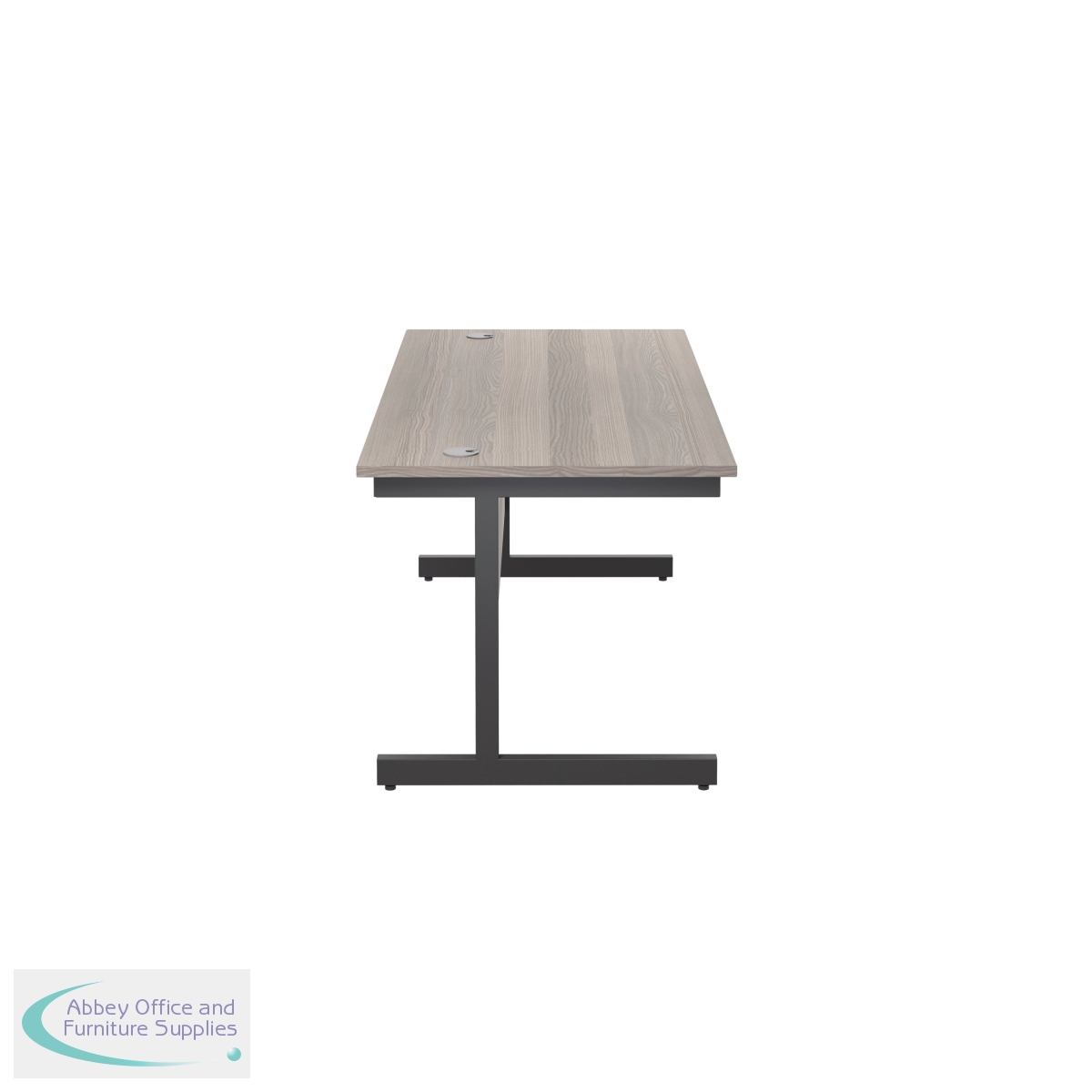 KF810896 - Jemini Rectangular Single Upright Cantilever Desk 1600x800x730mm Grey Oak/Black KF810896