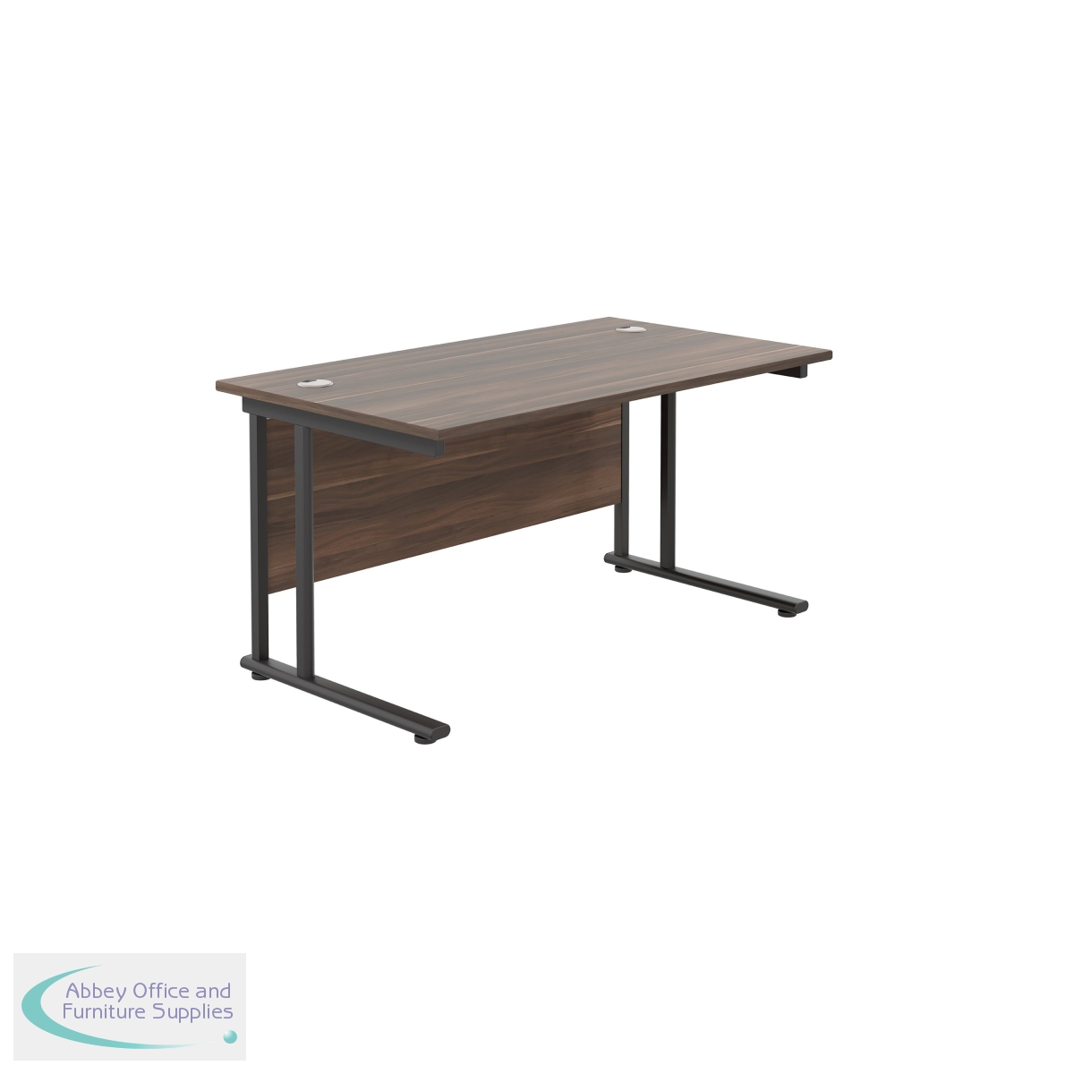 KF810940 - Jemini Rectangular Double Upright Cantilever Desk 1400x800x730mm Dark Walnut/Black KF810940