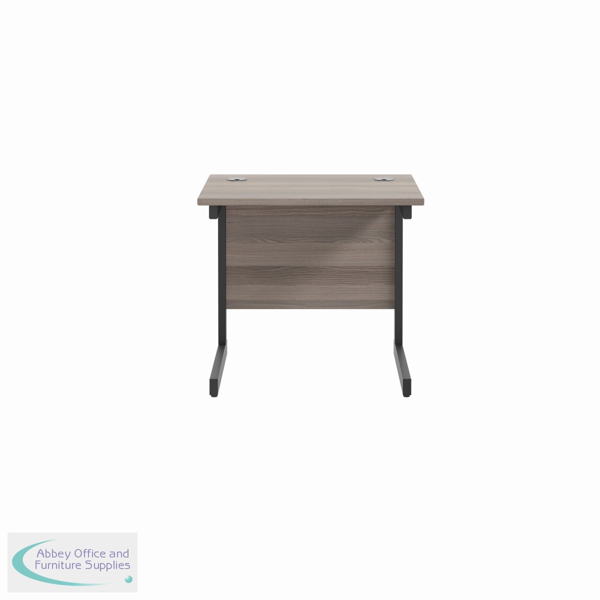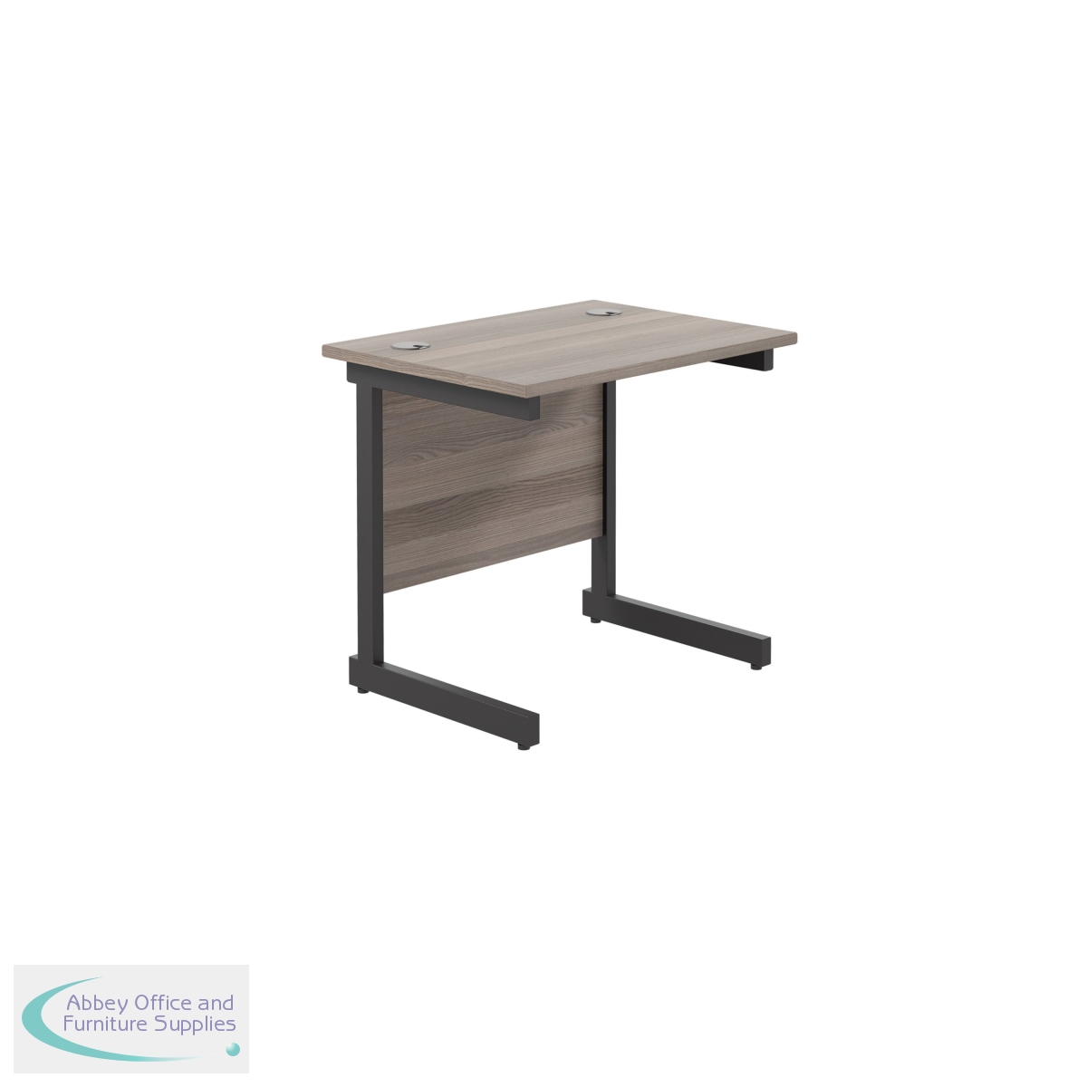 KF819509 - Jemini Rectangular Single Upright Cantilever Desk 800x600x730mm Grey Oak/Black KF819509