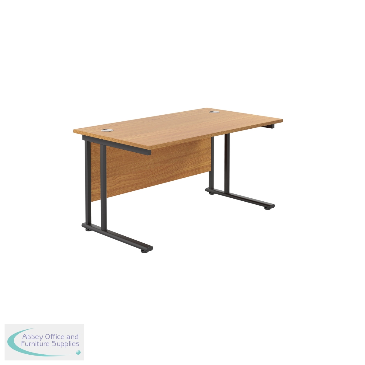 KF819622 - Jemini Rectangular Double Upright Cantilever Desk 1400x800x730mm Nova Oak/Black KF819622