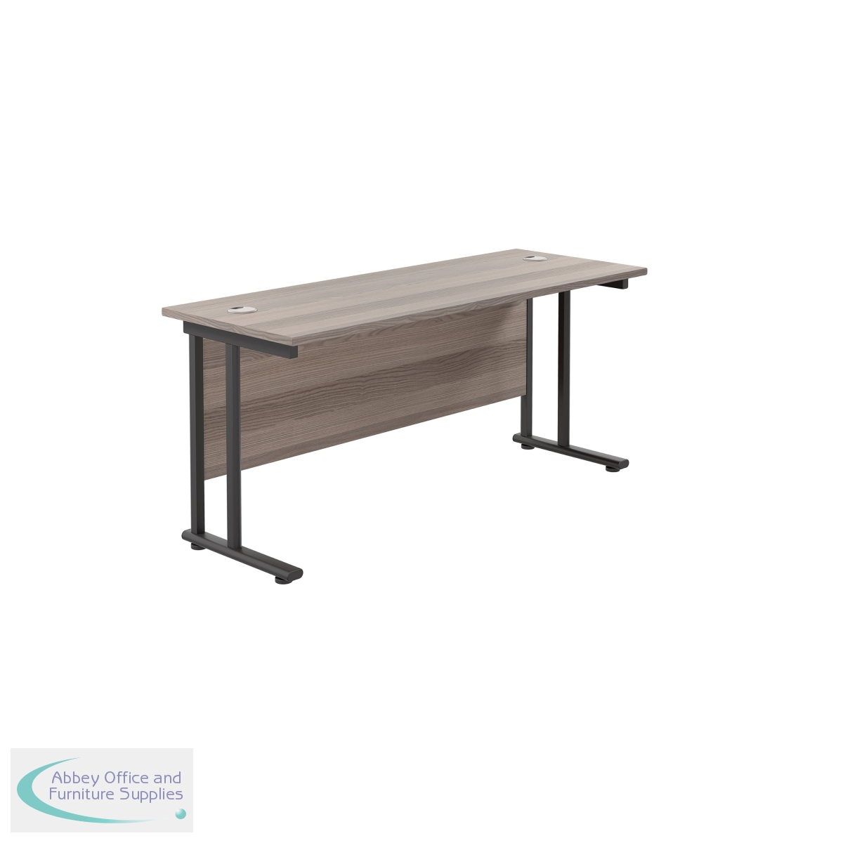 KF820093 - Jemini Rectangular Double Upright Cantilever Desk 1600x600mm Grey Oak/Black KF820093