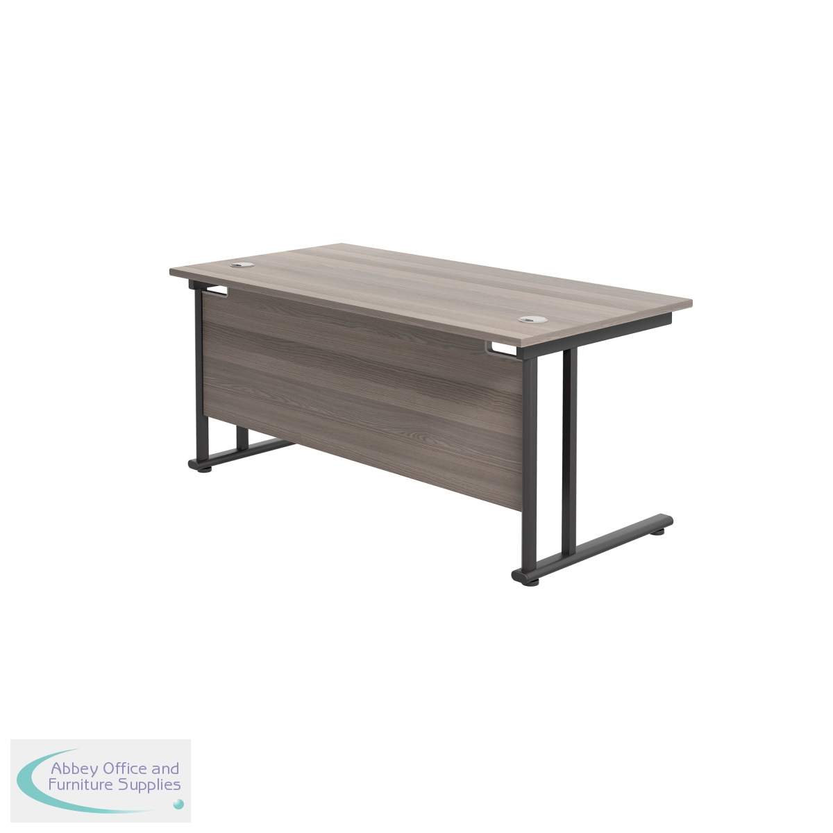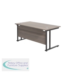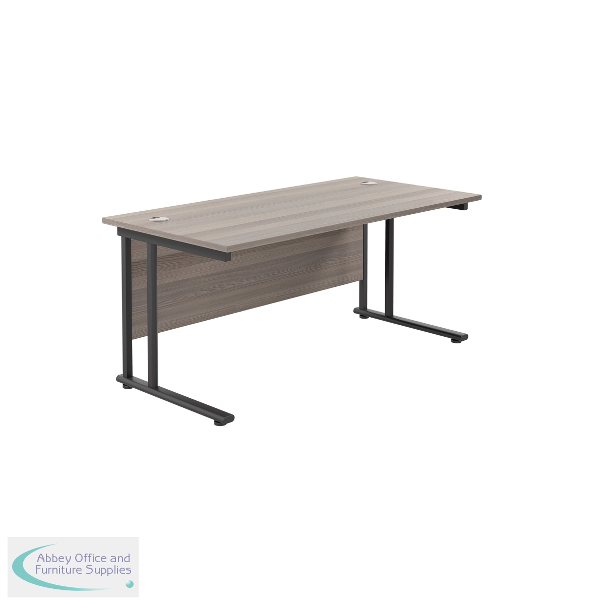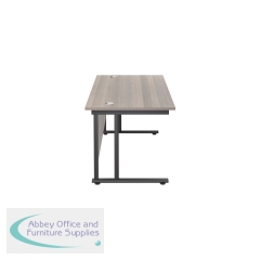 KF820277 - Jemini Rectangular Double Upright Cantilever Desk 1800x800x730mm Grey Oak/Black KF820277