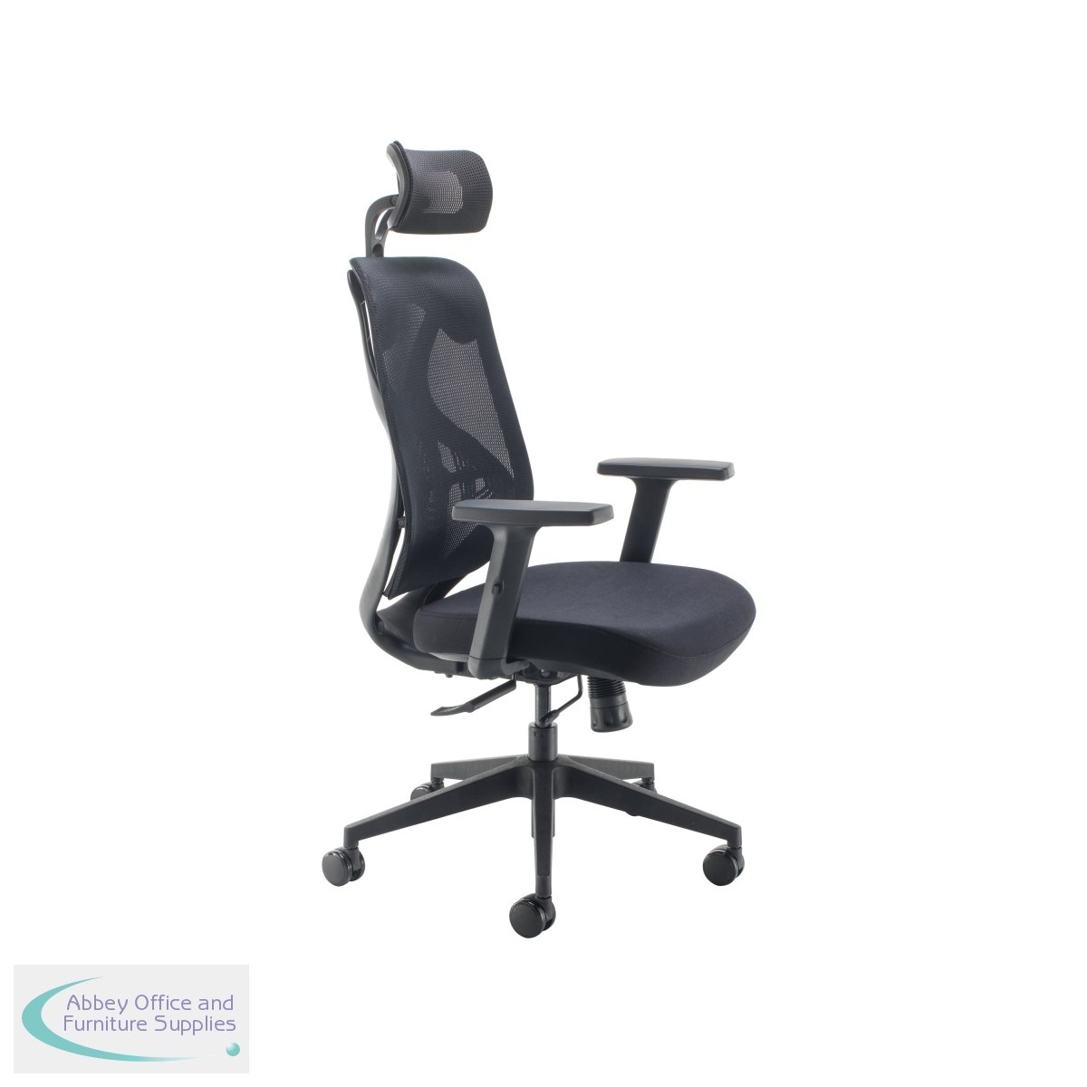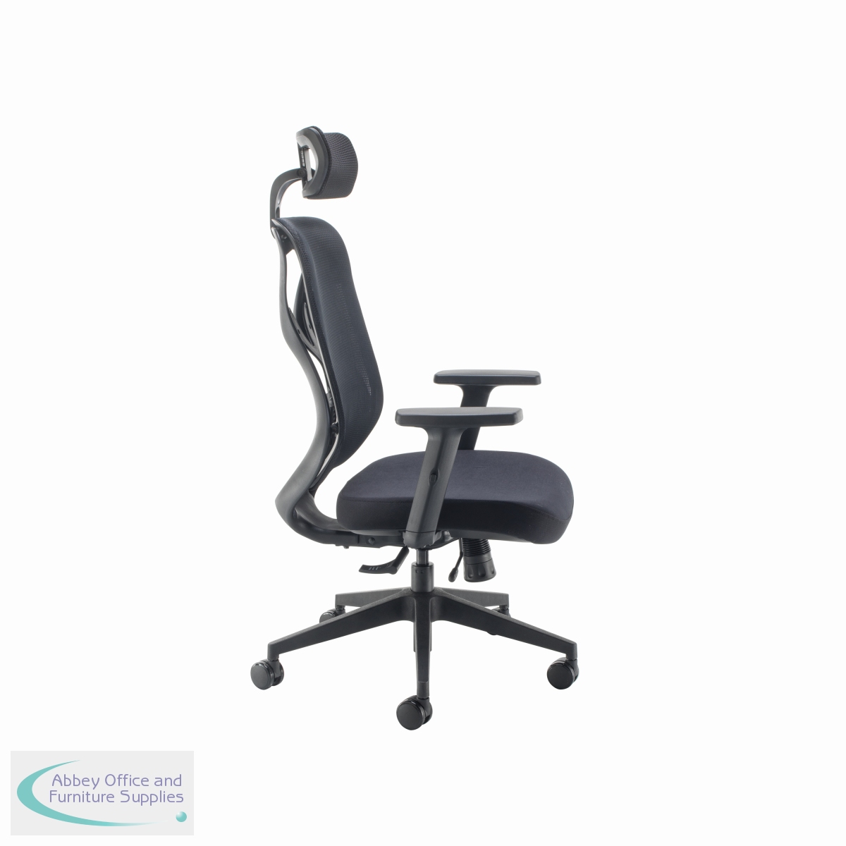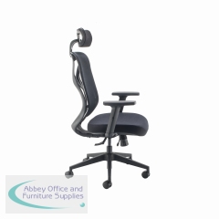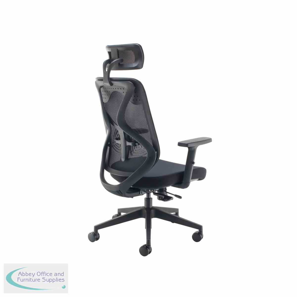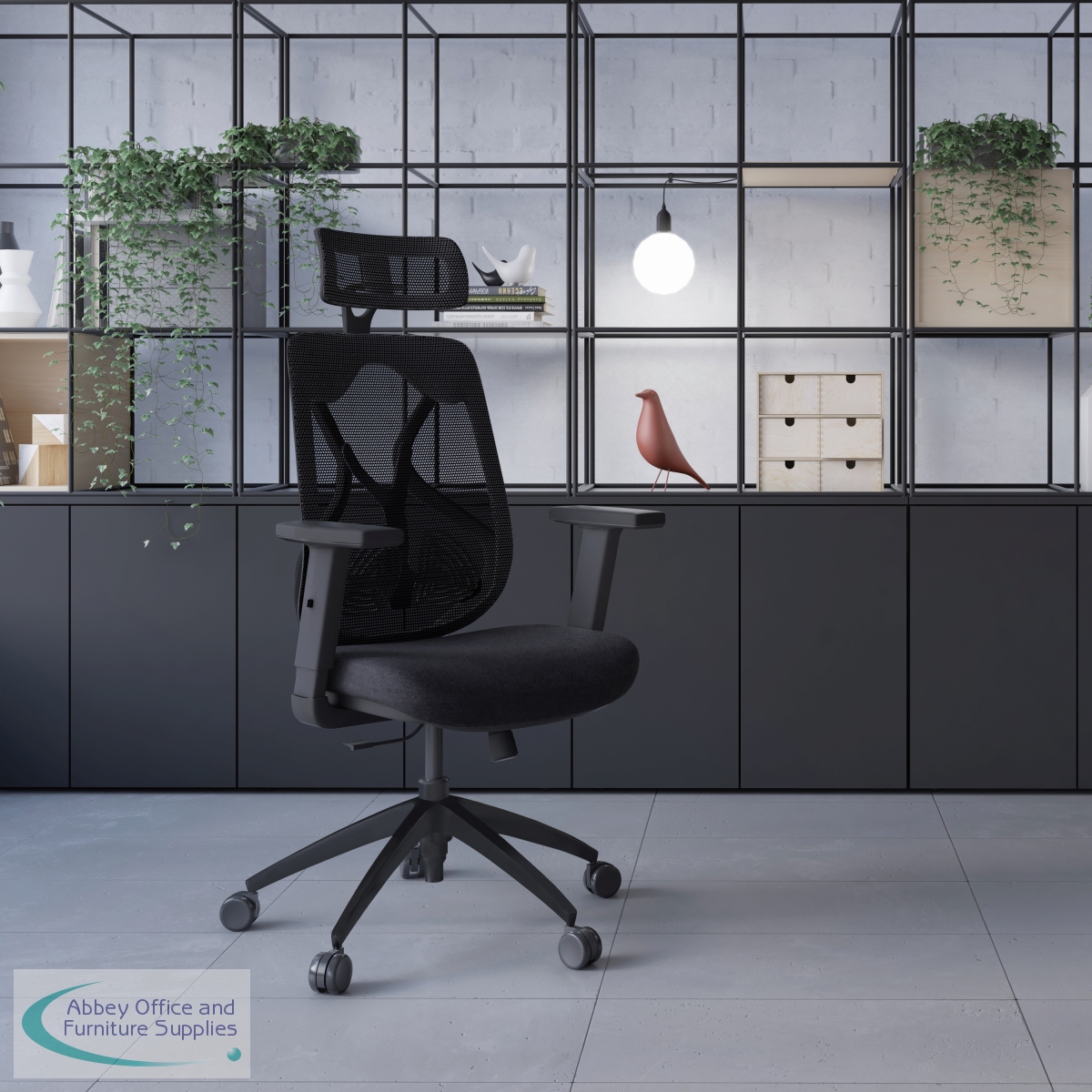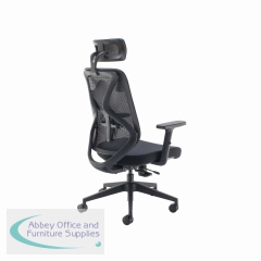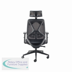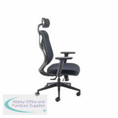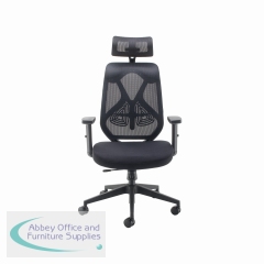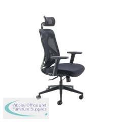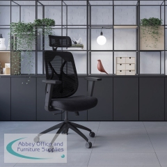 The Arista Stealth is an ergonomically designed high back office chair with adjustable headrest and height adjustable armrests. The office chair has an upholstered seat and mesh back for increased air flow and added comfort. Featuring synchro mechanism with tilt torsion control, seat slide and an adjustable lumbar support. Recommended usage of up to 8 hours.