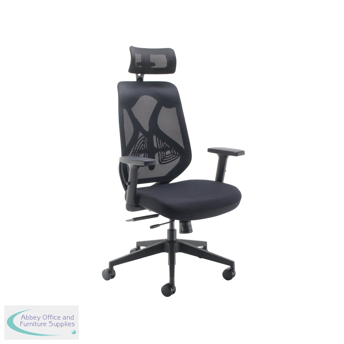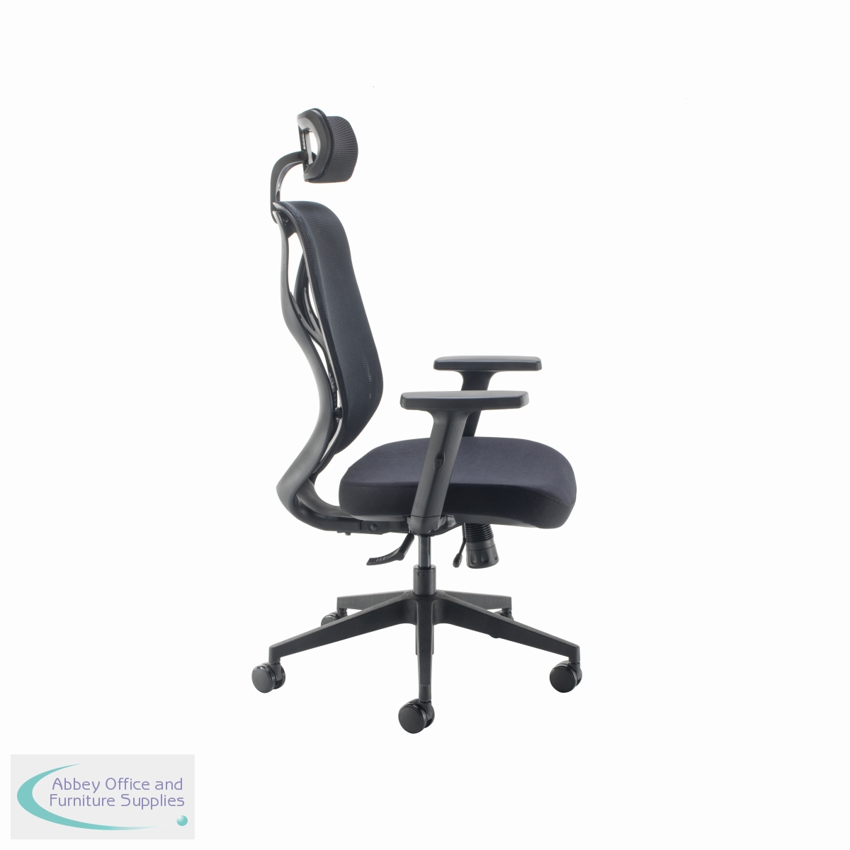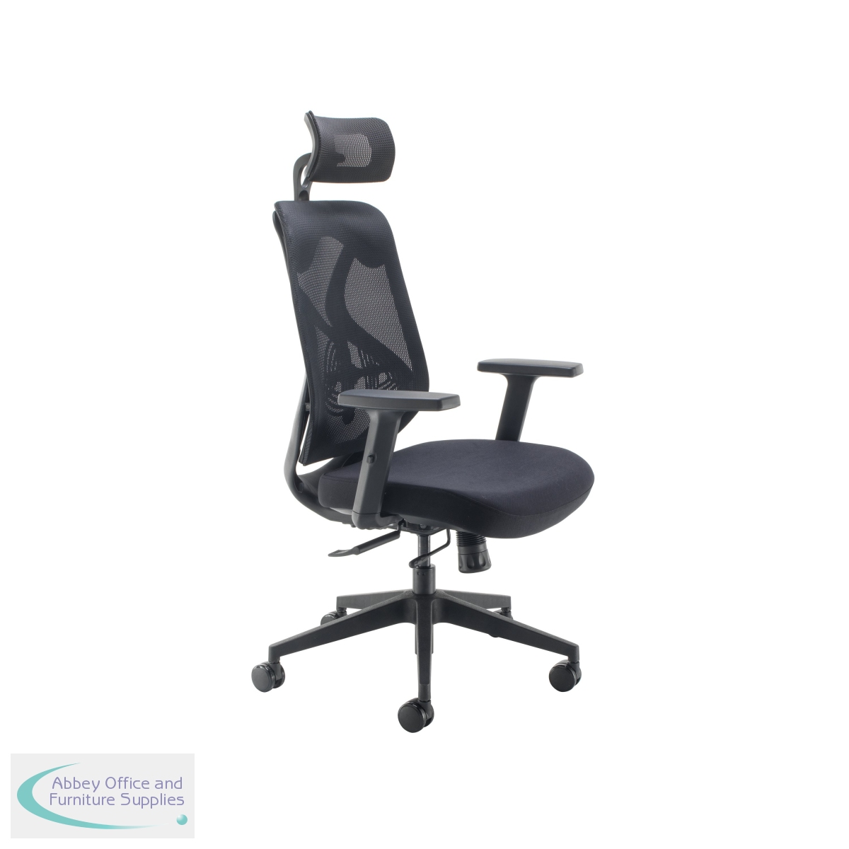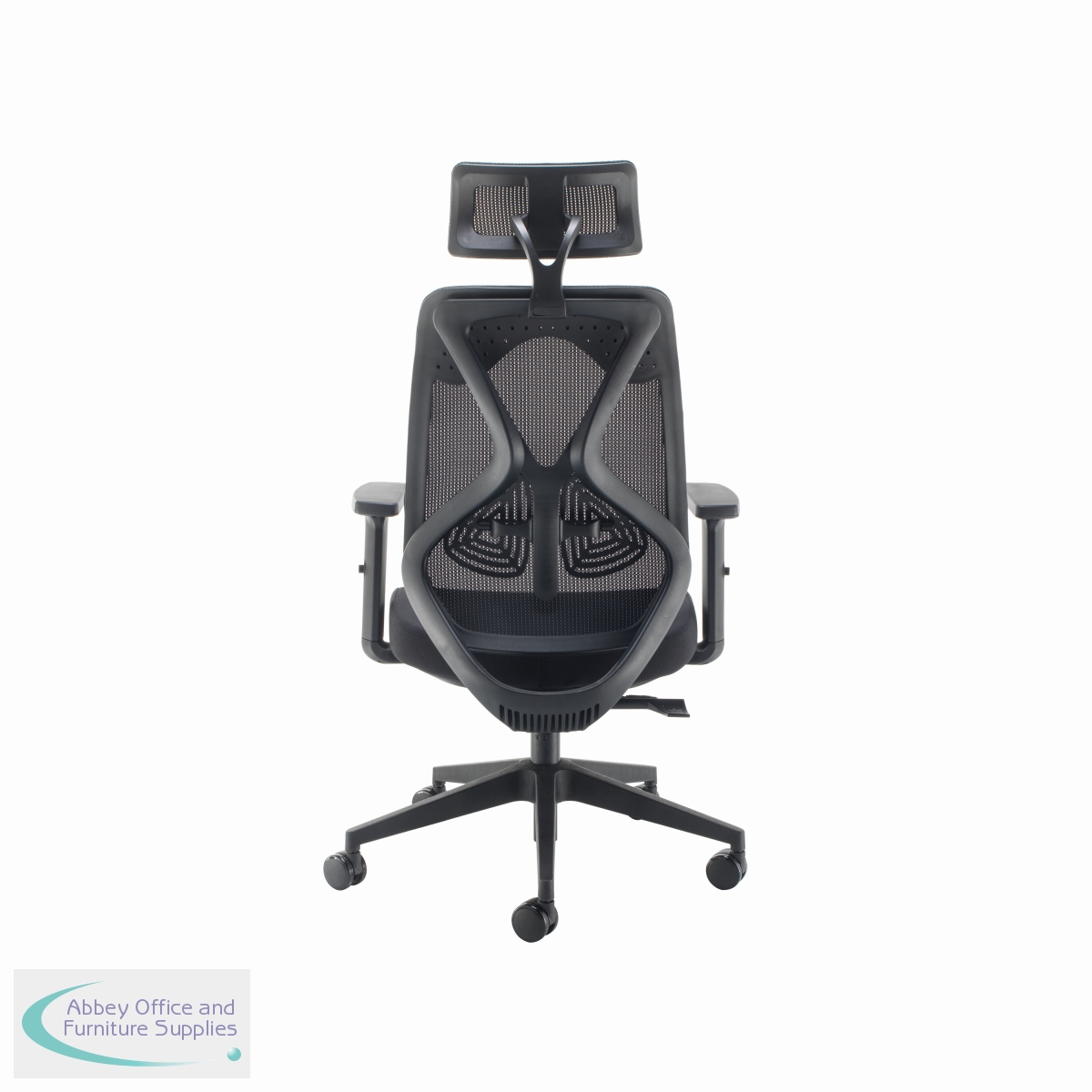 The Arista Stealth is an ergonomically designed high back office chair with adjustable headrest and height adjustable armrests. The office chair has an upholstered seat and mesh back for increased air flow and added comfort. Featuring synchro mechanism with tilt torsion control, seat slide and an adjustable lumbar support. Recommended usage of up to 8 hours.