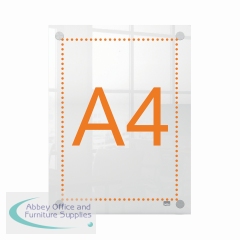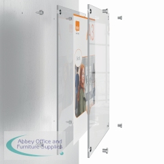 This wall mounted acrylic, A4, poster display frame with a modern frameless design has a stylish and contemporary feel. The seamless acrylic poster frame with sturdy corner fixings allows quick and simple content exchange in a portrait or landscape format whilst protecting your documents and pictures. The strong acrylic surface can be easily wiped clean making this sign holder the ideal solution for the display of temporary or permanent signs, documents, posters, awards or information. Display area size A4.