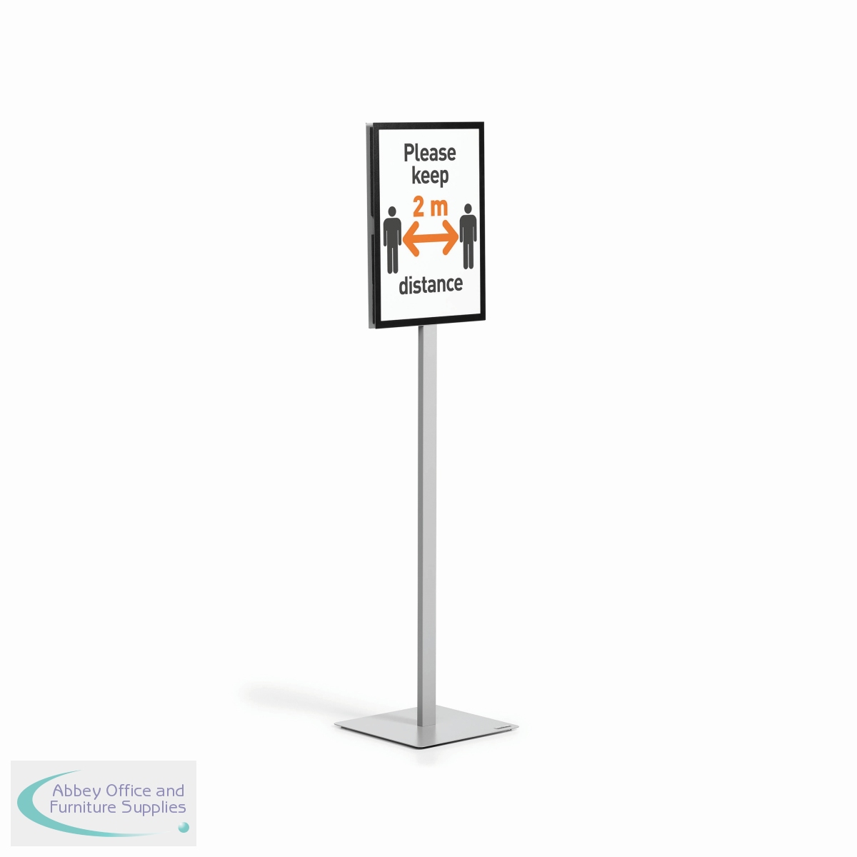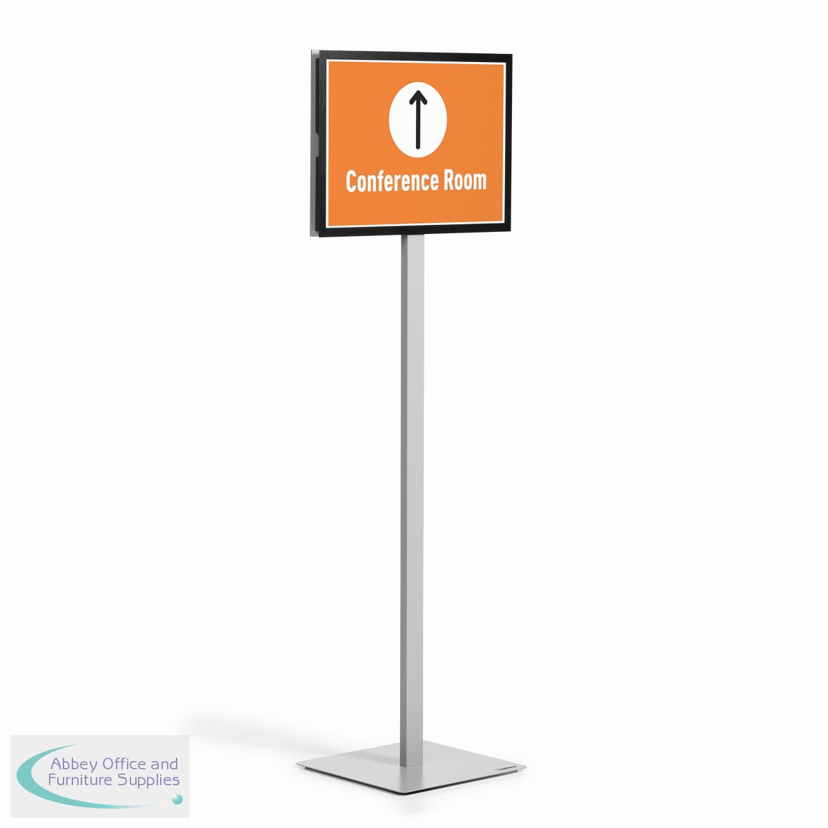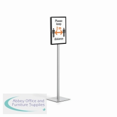 The Information Sign Floor Stand is the simple way to present information in a wide range of application areas and can be used as a wayfinding system due to its double-sided readability. Information is quick and easy to exchange, thanks to the use of two DURAFRAME MAGNETIC signage frames which are fixed to the metal plates. The stand is extremely stable thanks to the weighted base which includes 4 rubber feet. The innovative plug-in mechanism enables you to quickly change from portrait to landscape format without the need for tools. The floor stands are perfect for reception areas, exhibitions, lobbies and waiting rooms, etc. Includes mounting set and instructions.