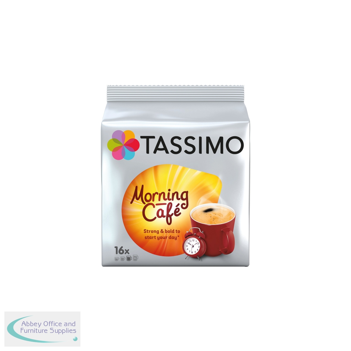 Enjoy a delicious cup of Tassimo Morning Cafe drink from your Tassimo machine, a strong and bold start to your day. Each pod provides a 215ml drink. 5 packs supplied, each pack contains 16 pods.