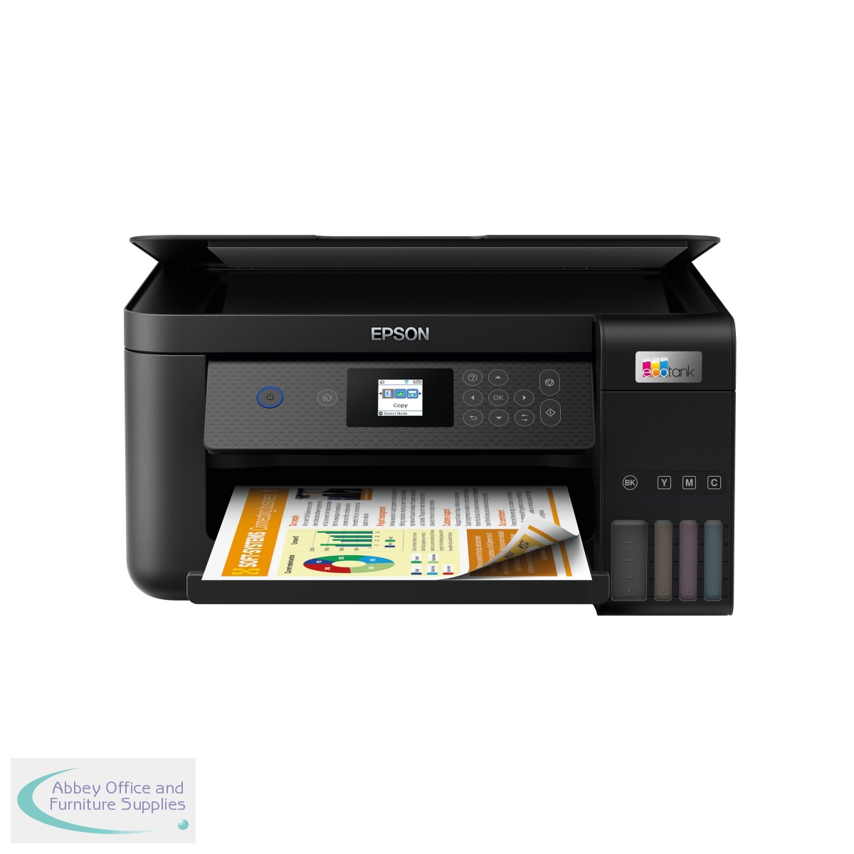 This Epson ET-2851 inkjet printer can print, scan and copy, ideal for the home office or small business use. Refillable ink tanks use cost saving replacement ink bottles. 100 sheet paper tray. Features inclued borderless photo printing (up to 100x150mm) and duplex printing. With the inks included print up to 7,500 monochrome pages (K)/6,000 colour pages (CMY). All controlled via a 370mm colour touch panel.