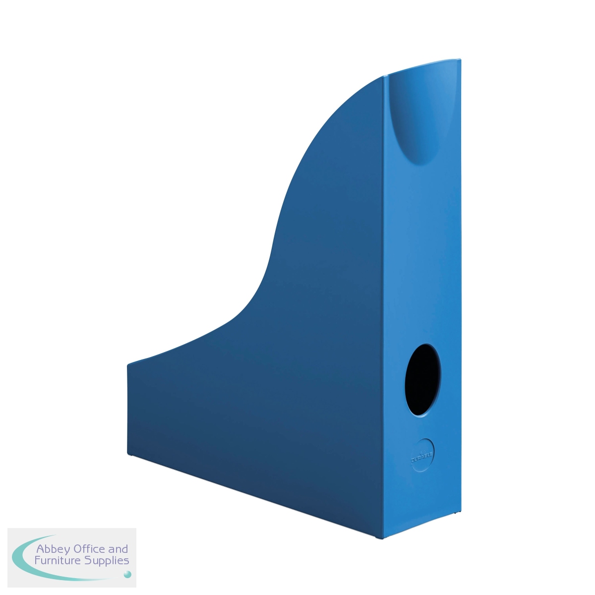 An Eco-friendly magazine rack that is not only good for the planet but also looks great on the desktop with Blue Angel certification for stringent environmental and performance standards. This stylish magazine rack is perfect for storing A4 format documents, magazines, catalogues and brochures. Featuring a finger grip hole to make it easy to remove from a shelf, this blue magazine rack measures 73 x 241 x 306mm.