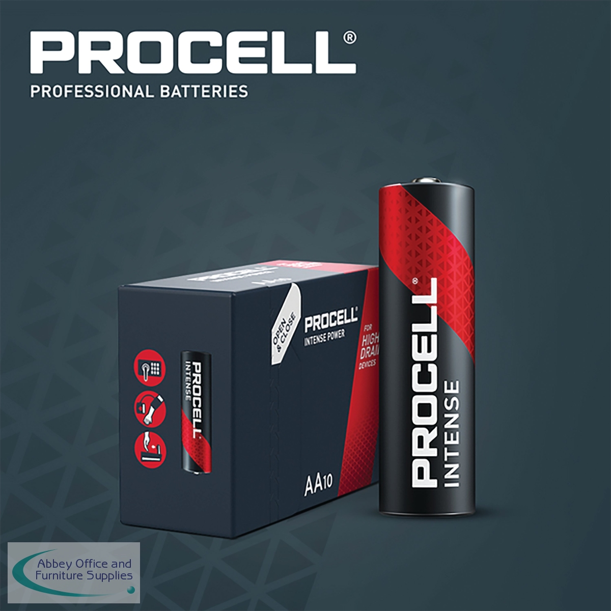 These Duracell Procell Intense AA industrial batteries are specifically designed to last longer in high drain devices that require a high amount of power or peaks of power. These batteries provide reliable power performance and can operate in temperatures ranging from -20 to 54 degrees Celsius. The batteries are ideal for medical devices, security cameras, soap dispensers, electronic door locks, window blinds and shades. The batteries offer excellent resistance to corrosion. Designed to meet all major quality, safety and environmental standards. This pack contains 10 batteries.