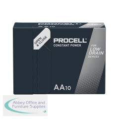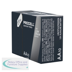 These Duracell Procell Constant AA Batteries provide reliable power performance and can operate in temperatures ranging from -20 to 54 degrees Celsius. The batteries are ideal for torches, clocks, remote controls, wireless mouse and keyboards as wells as other everyday applications. The batteries offer excellent resistance to corrosion. Designed to meet all major quality, safety and environmental standards. This pack contains 10 batteries.