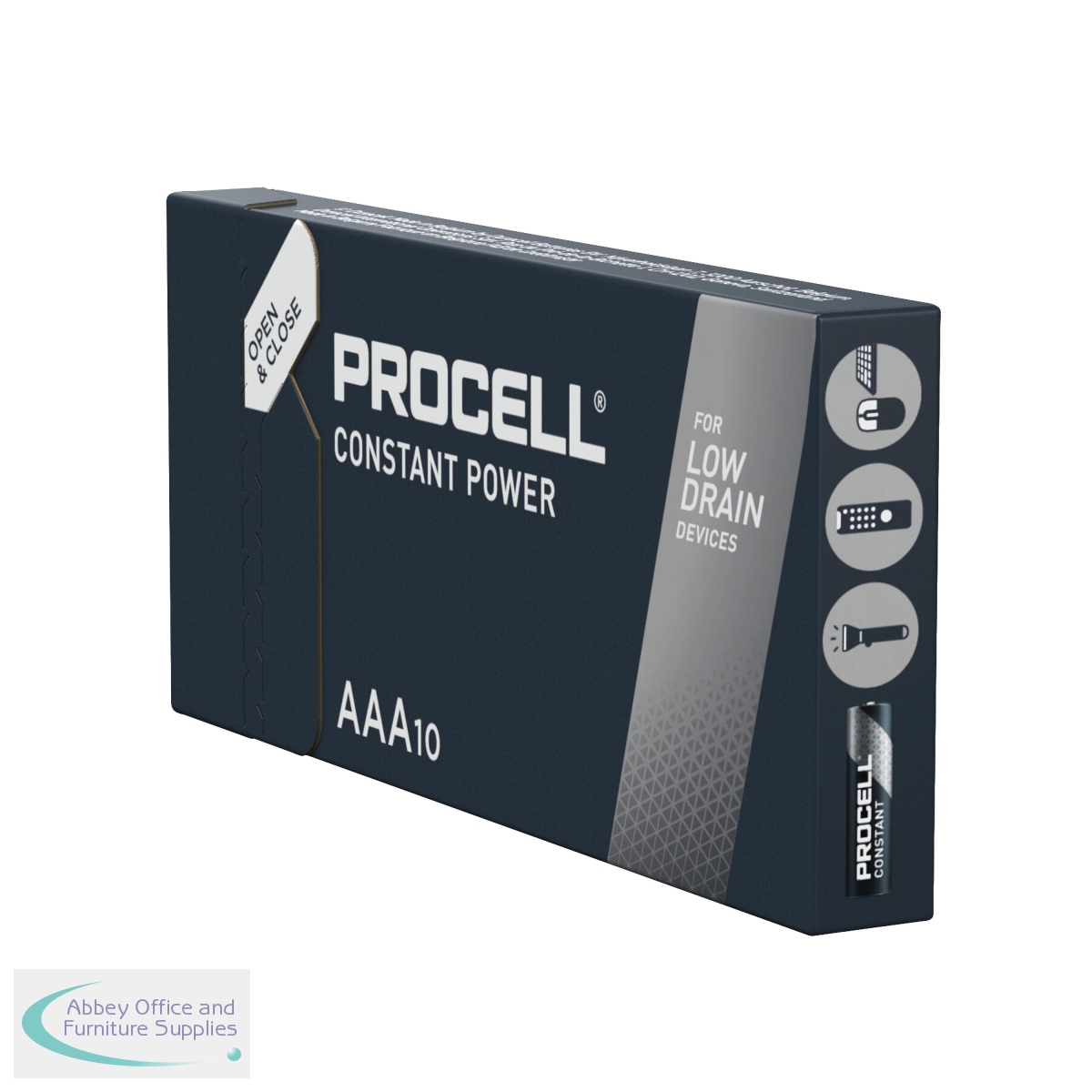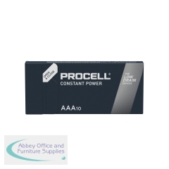 These Duracell Procell Constant AAA Batteries provide reliable power performance and can operate in temperatures ranging from -20 to 54 degrees Celsius. The batteries are ideal for remote controls, sensors, wireless mouse and security keypads. The batteries offer excellent resistance to corrosion. Designed to meet all major quality, safety and environmental standards. This pack contains 10 batteries.