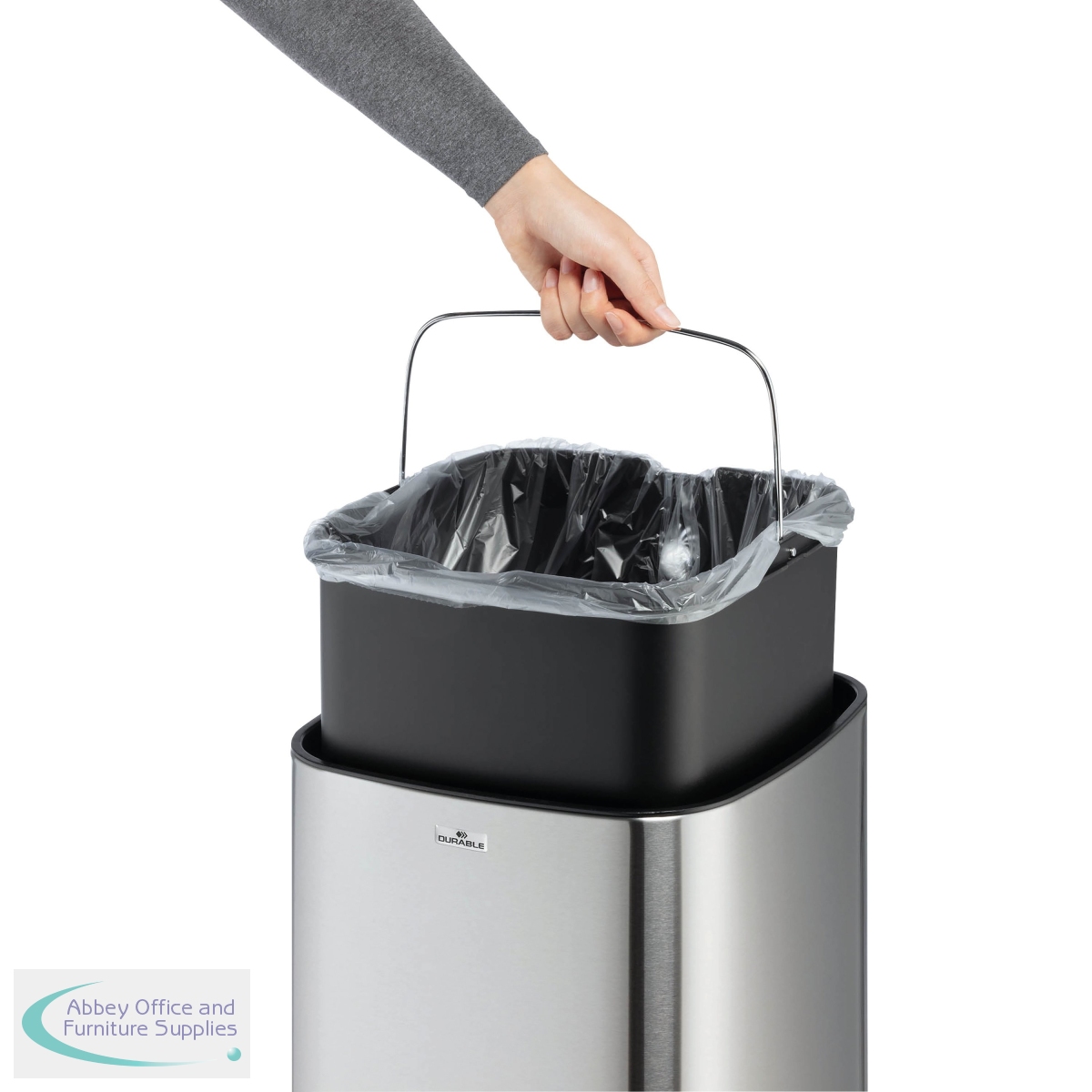 DB72835 - Durable Sensor Waste Bin No Touch Square 35 Litre Silver 342323