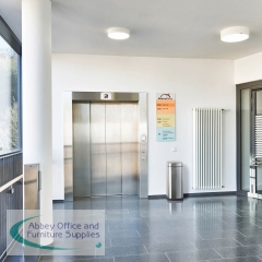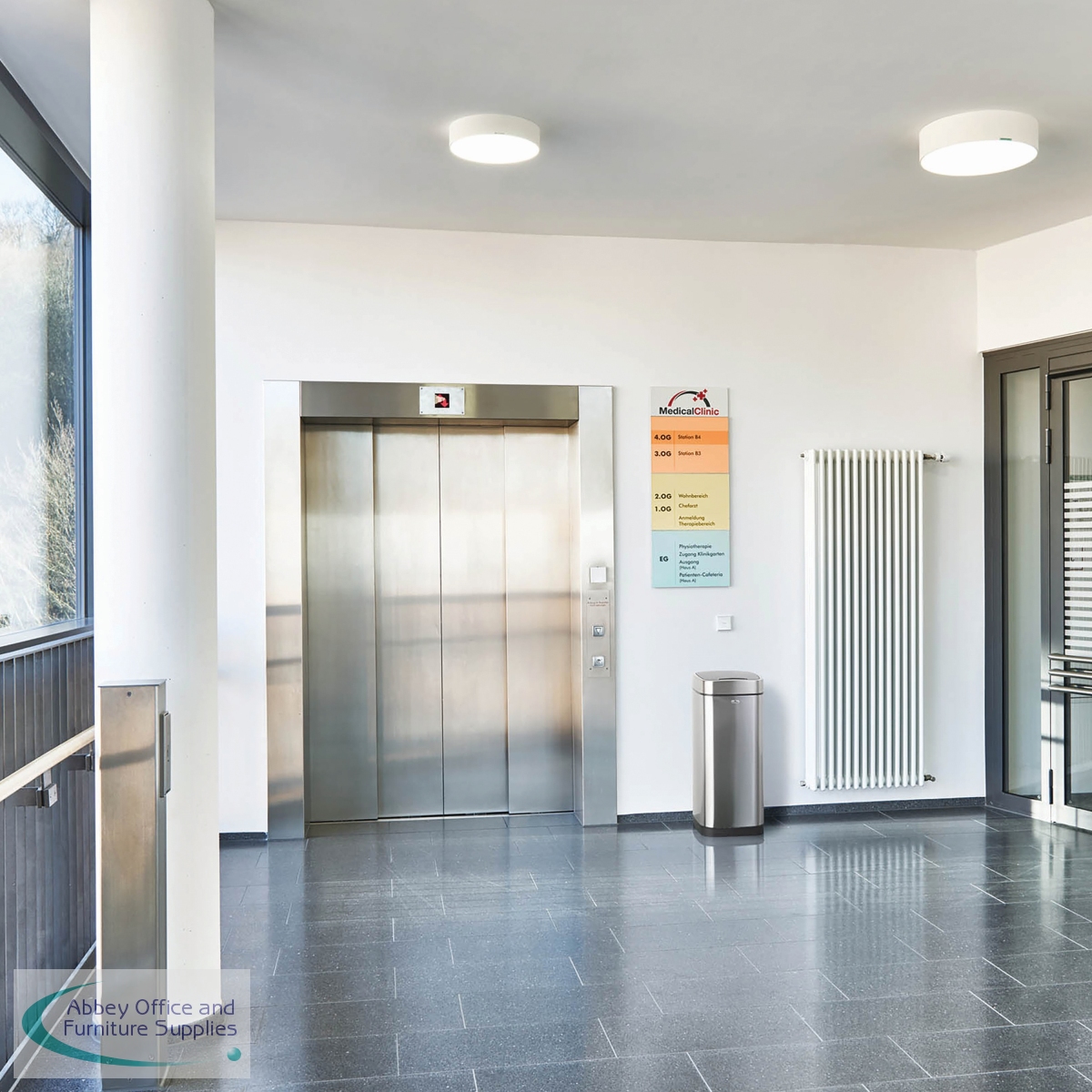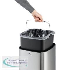The Durable Sensor 35 litre waste bin is made from stainless steel with a fingerprint proof coating perfect for any workplace or home environment. The bin opens and closes automatically thanks to sensor technology for contact-free waste disposal. The bin can also be operated manually if required via buttons on the lid. This bin also comes with a removable inner container with carry handle for easy cleaning and disposing of waste. A waste bag can be fixed using the fixing ring to keep it securely in place. It also has a non-slip base and square shape for space-saving placement. Requires 4xAA (Not included).