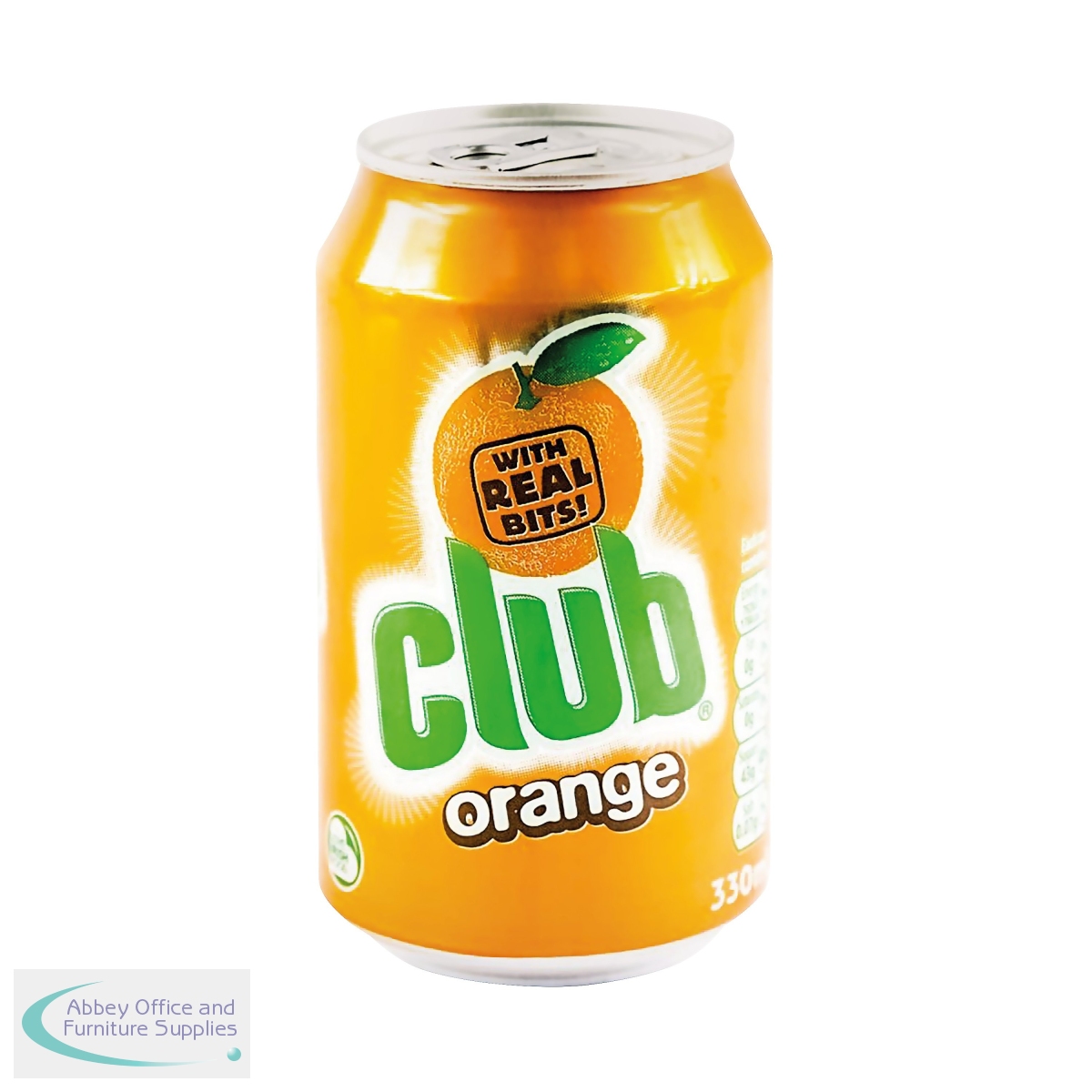 Club orange soft drink, made with carbonated water, sugar, orange fruit from concentrate with real orange bits. 330ml can. Supplied in a pack of 24 cans.