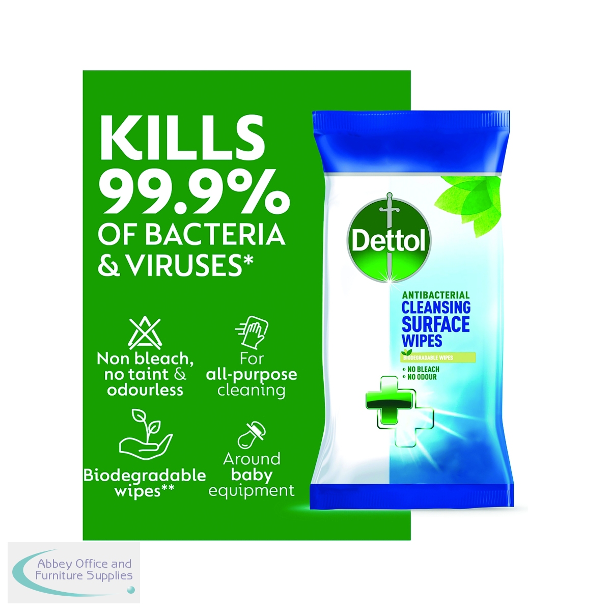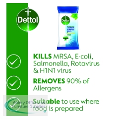 With an enhanced resealable lid to lock in moisture, these Dettol antibacterial surface cleaning disinfectant wipes are proven to kill 99.9% of bacteria. They are ideal to disinfect any surface including food preparation areas like chopping boards and baby equipment like highchairs. Complete with enhanced pocket technology to create thicker, moisture-rich wipes, these Dettol antibacterial surface cleaning wipes are completely bleach free, odourless and leave no taint. In a convenient and easy to use format, they are ideal for fast and hygienic cleaning.
