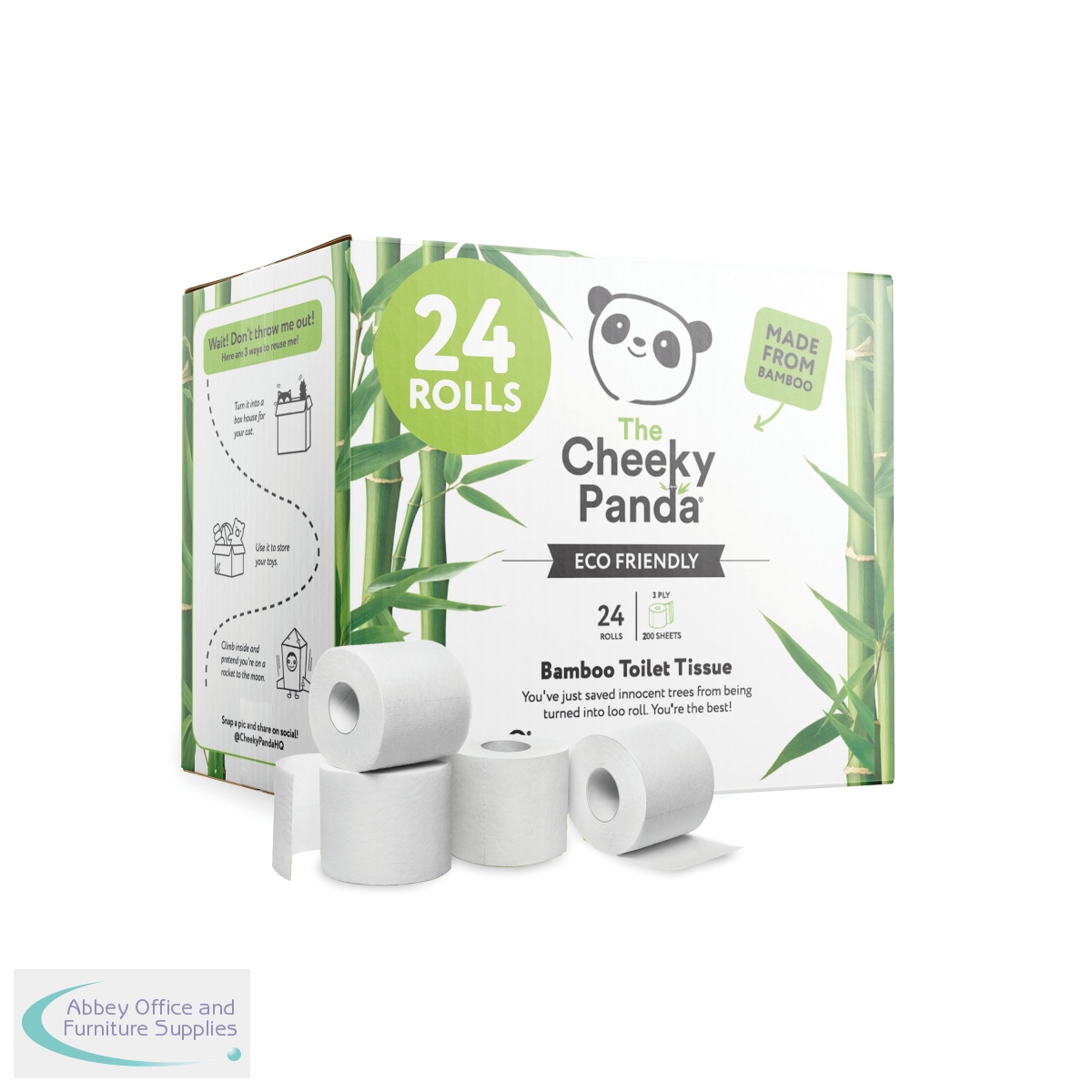 CPD63028 - Cheeky Panda 3-Ply Toilet Tissue 200 sheets (Pack of 24) PFTOILT24