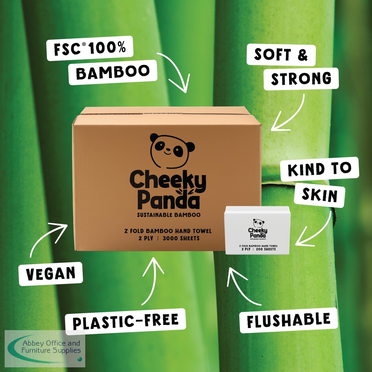 CPD67864 - Cheeky Panda Z-Fold 2-Ply Bamboo Hand Towel 200 Towels per Pack (Pack of 15) ZHANDTW15