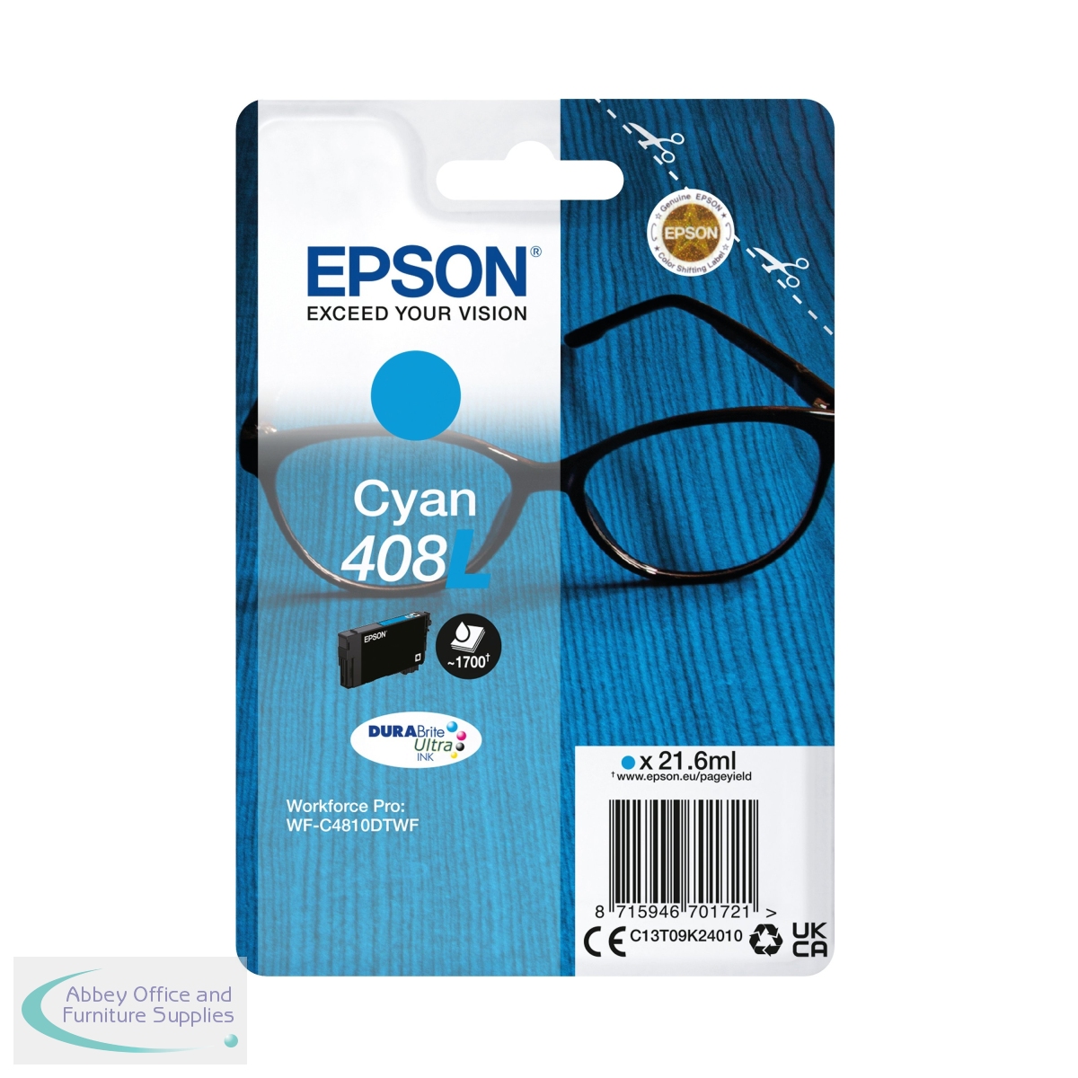 EP70172 - Epson 408L Glasses DURABrite Ultra Ink Cartridge High Yield Cyan C13T09K24010