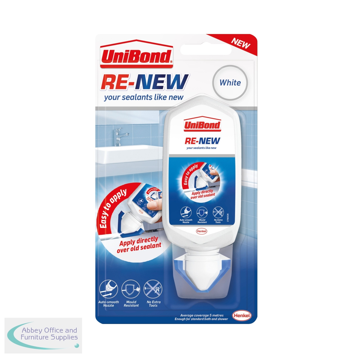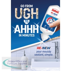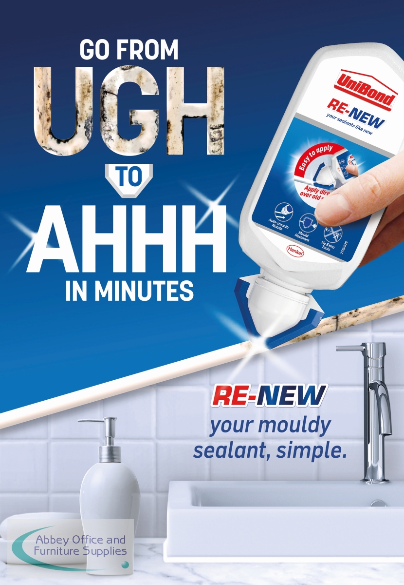 Unibond RE-NEW can help you quickly rejuvenate dirty, cracked or mouldy sealant. Simply apply the sanitary silicone on top of existing sealant, no need to remove the old sanitary sealant. An integrated smoothing tool ensures an even finish. Thanks to the triple protection mould resistance the joint sealant repels, kills and prevents mould over the long term. One tube of this mould-resistant sealant typically covers one standard bathroom suite (1 bath, 1 shower and 1 sink).