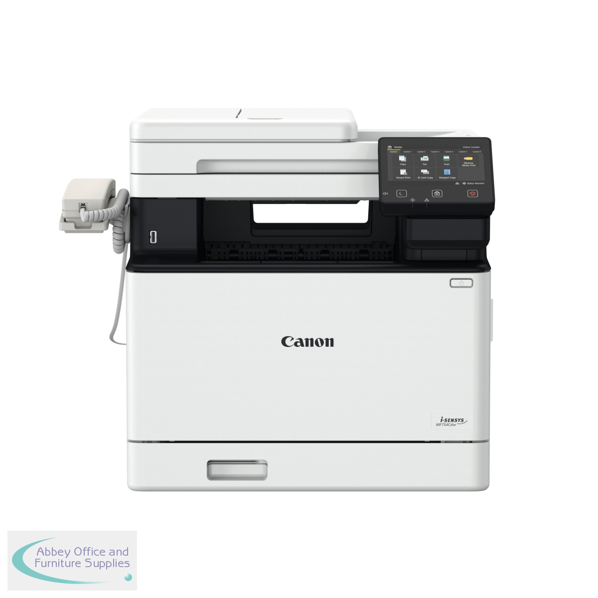 Print, copy, scan and fax with this all-in-one colour laser printer ideal for the office or home use. With a 250 sheet cassette paper trays tray, 50 sheet multi-purpose tray and 50 sheet ADF printing up to A4 size. Colour scanning on a Platen, 2-sided ADF (single pass) scanner. Automatic 2-sided to 2-sided copying. Fax with up to 281 speed dials, can transmit and receive double sided faxing. Advanced printing features: Encrypted secure print, Secure print, Print from USB memory key and Cloud, Microsoft Universal priont support, iOS: AirPrint, Canon PRINT Business app, Android: Mopria certified, Canon Print Service Plug-in, Canon PRINT Business app.