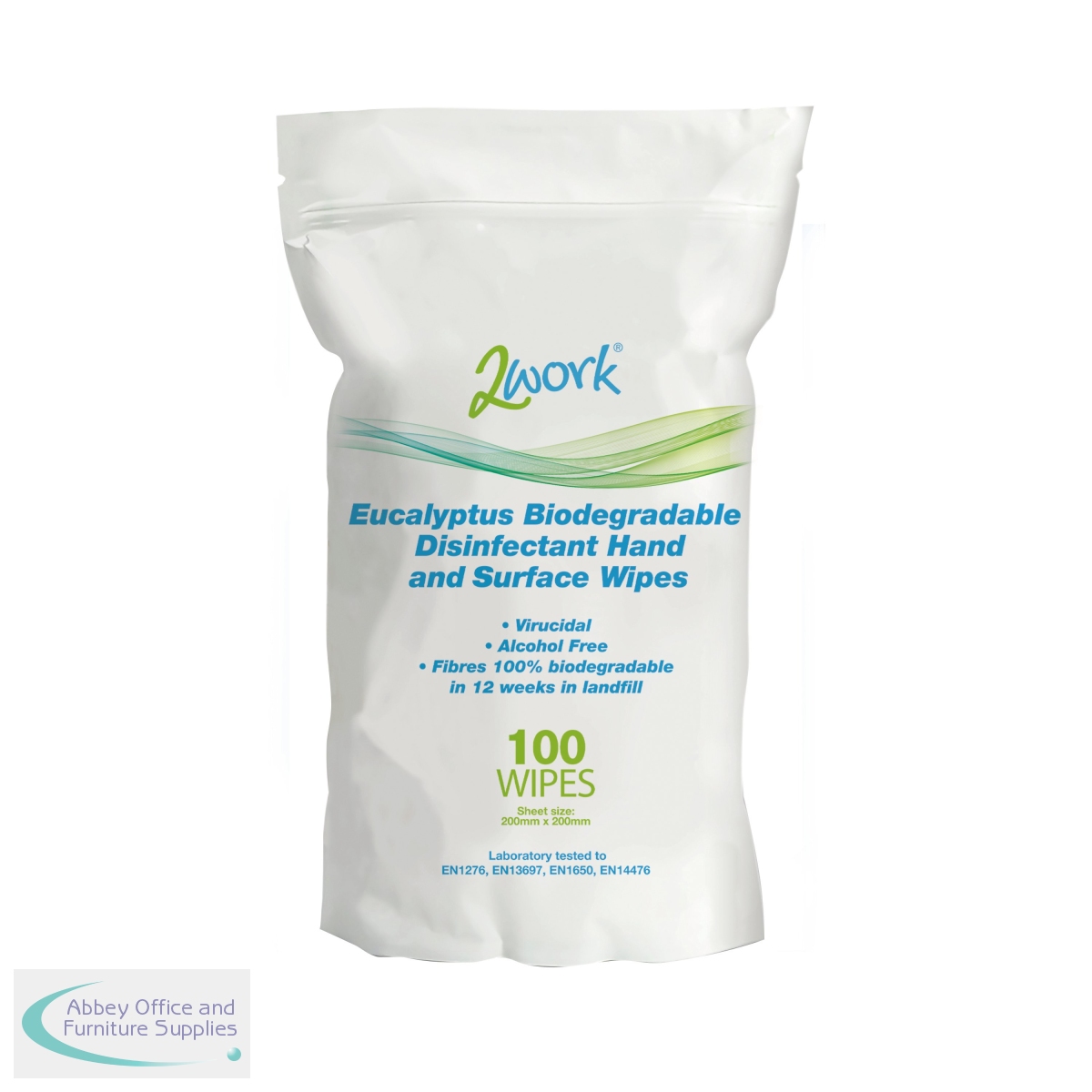 2W09161 - 2Work Biodegradable Eucalyptus Hand/Surface Disinfectant Wipes (Pack of 100) 2W09161