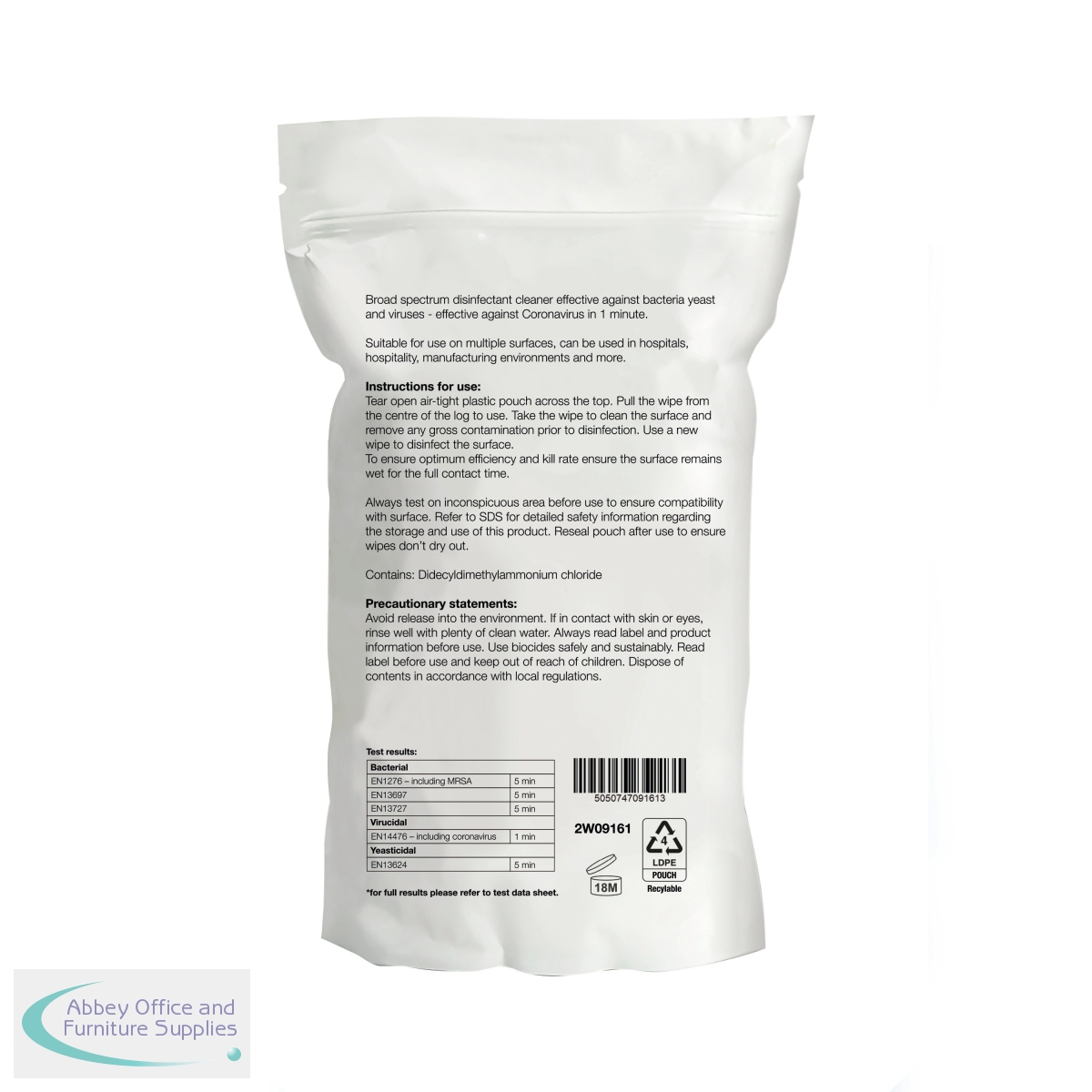 2Work biodegradable eucalyptus wipes are for hand and surface disinfecting, ideal for use in education and workplace environments, including the hospitality environment, not for food preparation areas. 100% biodegradable durable wipe material. Pouch is 100% recyclable in waste streams such as 'carrier bag waste'. Effective against Coronaviruses, tested to EN1276 and EN4476. Large wipe size.