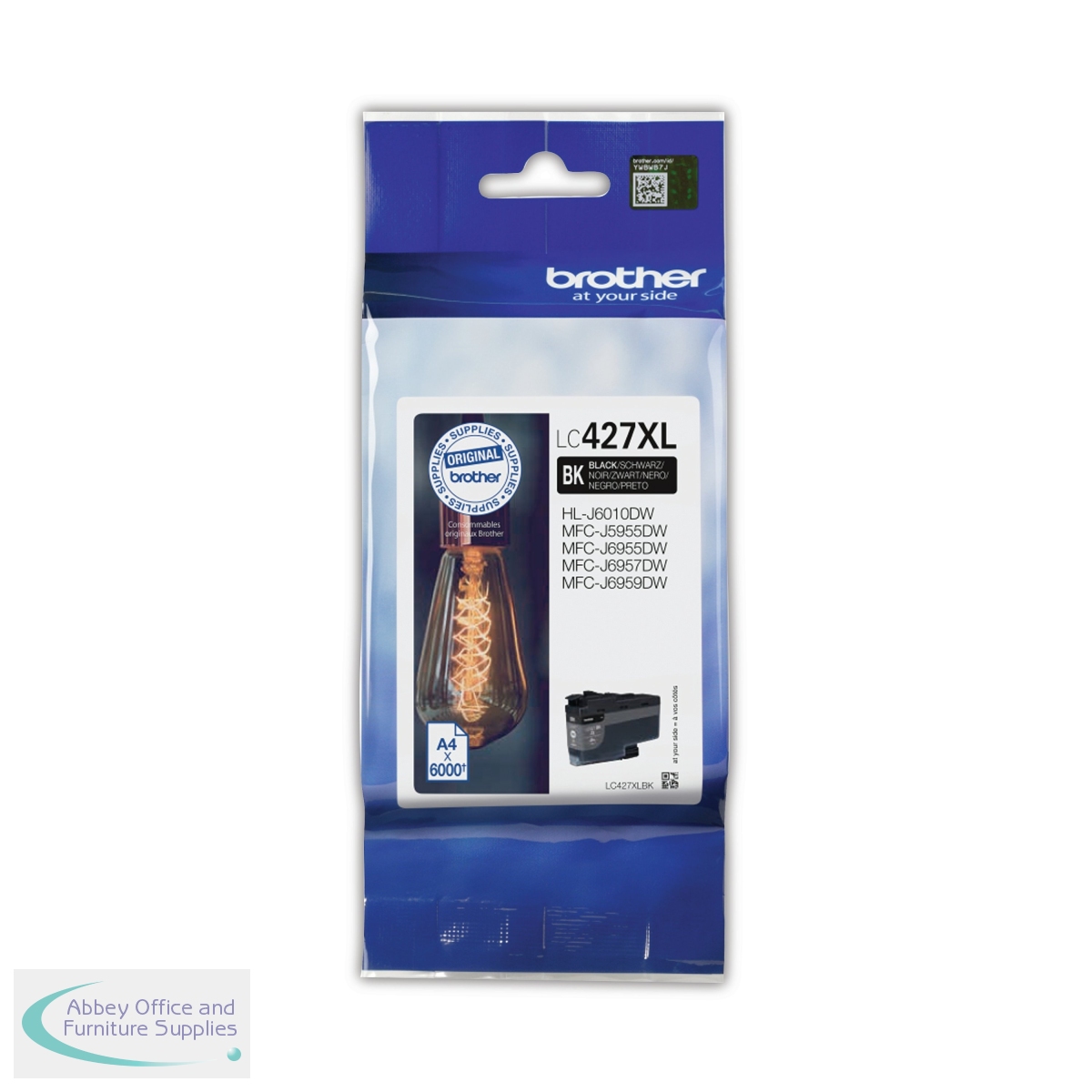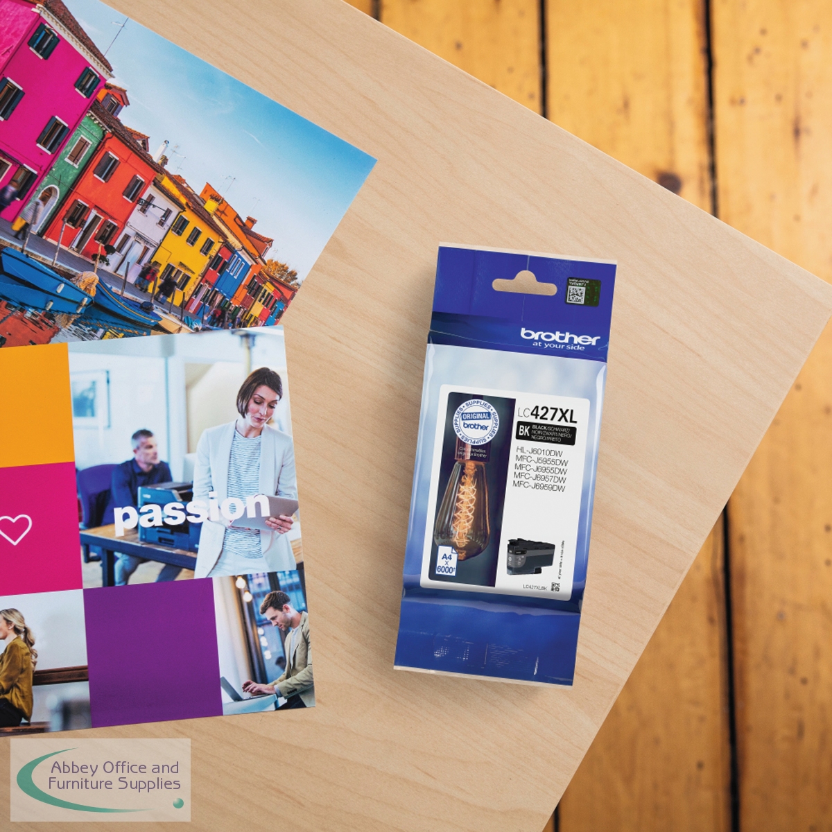 This LC427XLBK ink cartridge is compatible with a wide range of Brother machines and as a genuine, original Brother cartridge you can be confident that you will get quality printouts. This high yield, single pack cartridge will print up to 6,000 pages.