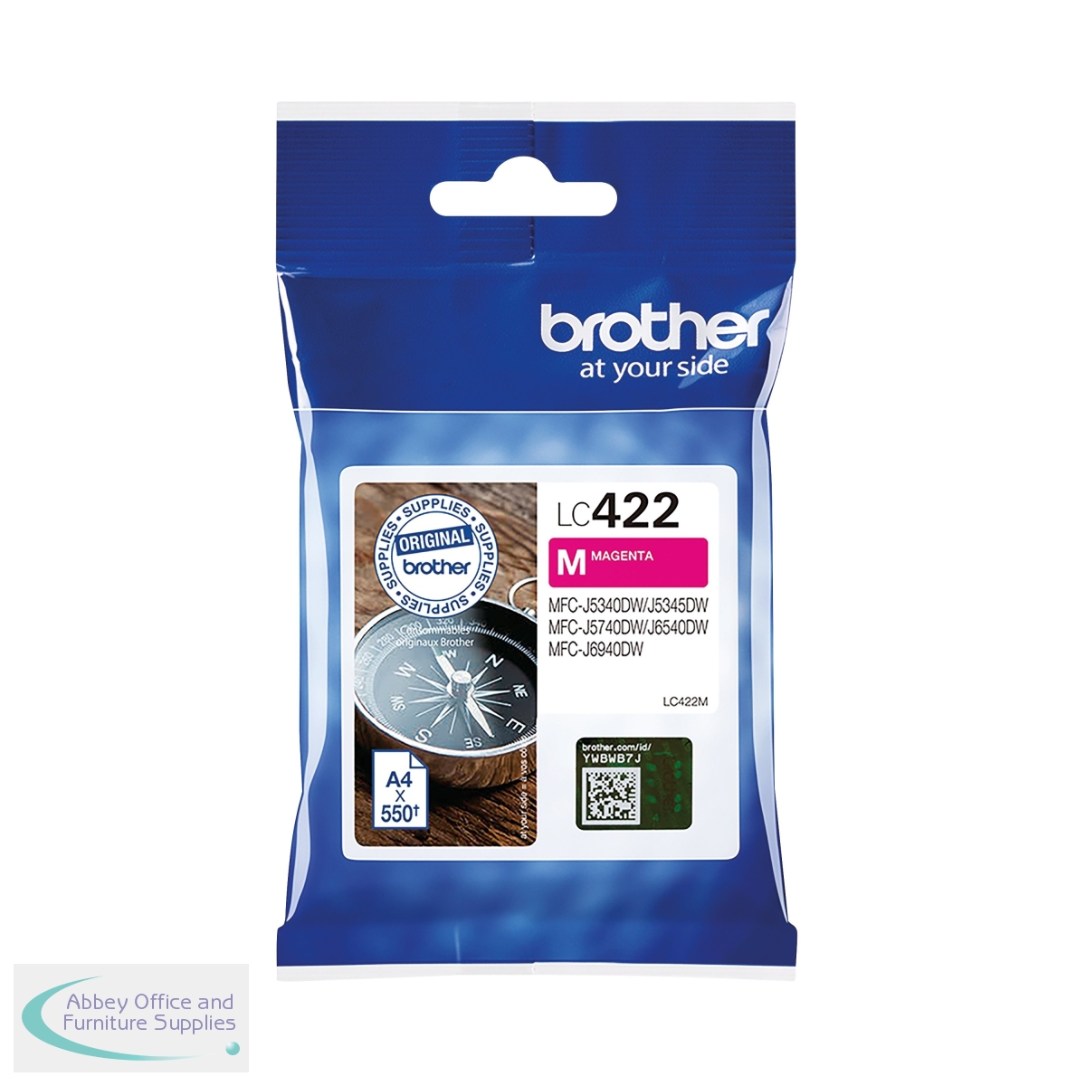 This LC422M ink cartridge is compatible with a wide range of Brother machines and as a genuine, original Brother cartridge you can be confident that you will get quality printouts. This single pack cartridge will print up to 600 pages.