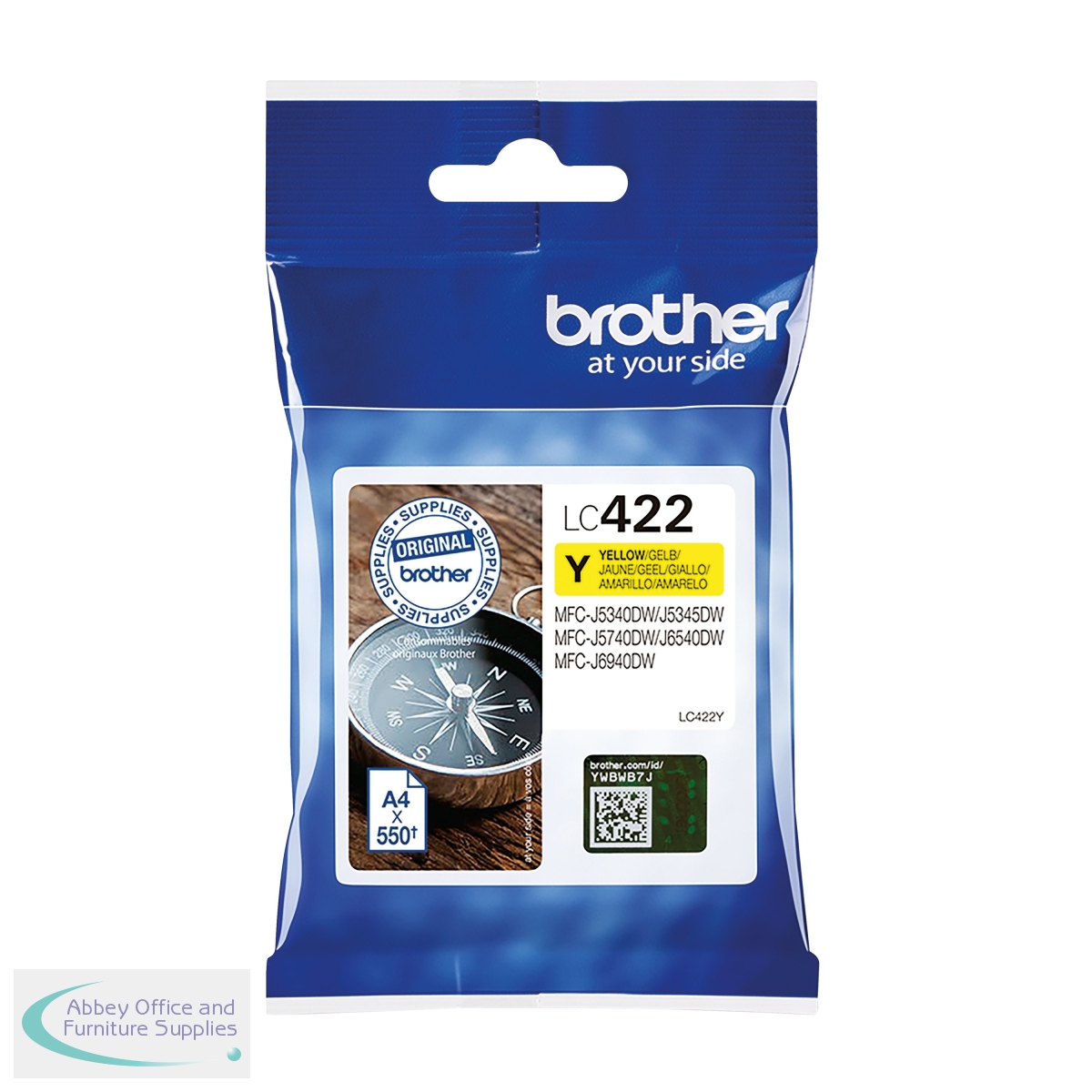 This LC422Y ink cartridge is compatible with a wide range of Brother machines and as a genuine, original Brother cartridge you can be confident that you will get quality printouts. This single pack cartridge will print up to 600 pages.