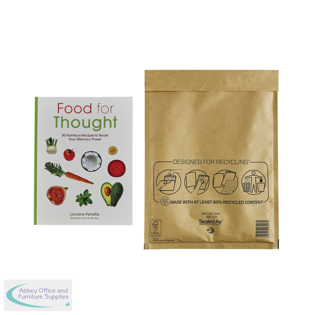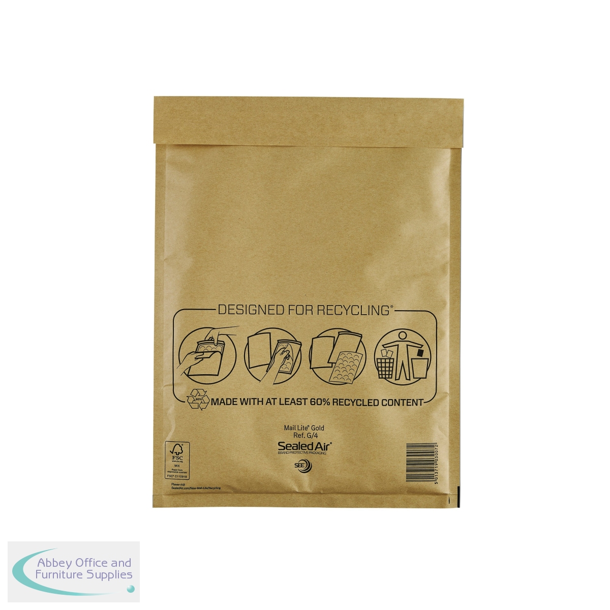 These lightweight Sealed Air postal bags feature an AirCap bubble lining (made from 60% recycled content) for high performance protection for delicate and fragile items in transit. The mailers also feature a tough non-coated Kraft outer (which can be recycled) and strong self-seal closure. These size G/4 bags measure 240 x 330mm and are supplied in a pack of 50 in Gold.