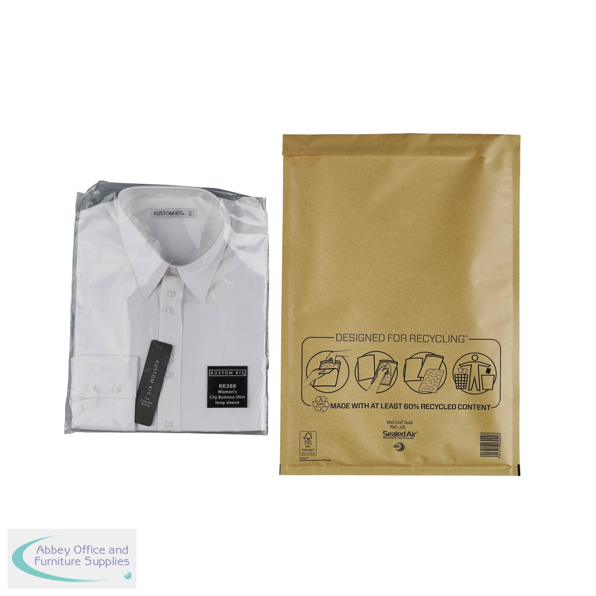These lightweight Sealed Air postal bags feature an AirCap bubble lining (made from 60% recycled content) for high performance protection for delicate and fragile items in transit. The mailers also feature a tough non-coated Kraft outer (which can be recycled) and strong self-seal closure. These size J/6 bags measure 300 x 440mm and are supplied in a pack of 50 in Gold.