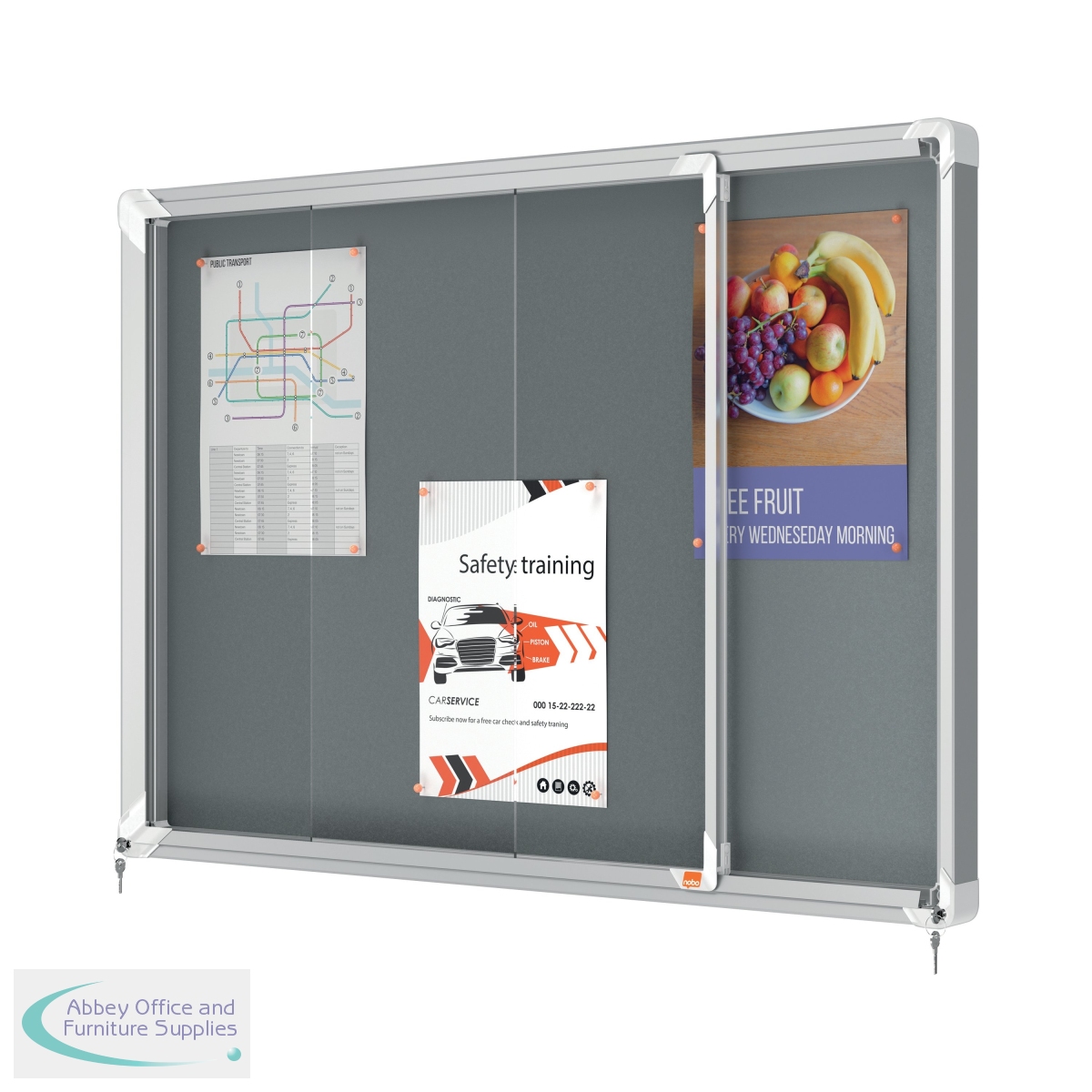 NB61158 - Nobo Premium Plus Lockable Noticeboard 8xA4 Sheets Grey Felt 1915336
