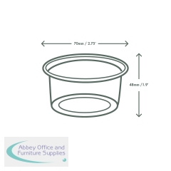 Round eco portion pot. One flat lid fits all sizes, for a great seal and easy stacking. For cold toppings or sauces, mini snack or protein pots, or sampling. Made from PLA, a renewable material made from plants. Clear for visibility. Award-winning quality by Vegware, made from plants. Commercially compostable where accepted.