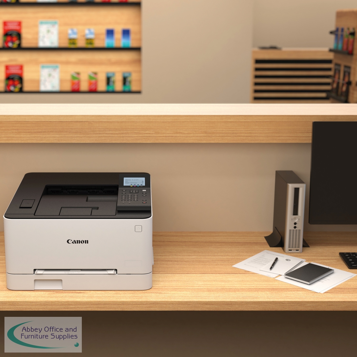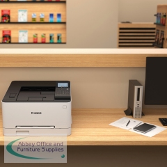 This Canon i-SENSYS LBP633Cdw colour single-function A4 laser printer is designed for small to medium businesses or individuals working remotely. This compact, space saving printer is perfect for small working areas. Processor Speed: 800MHz x2, 1 GB Memory. Produces quality prints at 21 pages per minute. The warm up time is 13 seconds or less from power on, with first printout in 10.5 seconds or less. Print resolution is up to 1200 x 1200 dpi. 45 PCL fonts, 136 PS fonts. Automatic double-sided printing. Secure Print: Print from USB memory key (JPEG/TIFF/PDF); Canon PRINT Business app, iOS: AirPrint; Android; Mopria certified, Canon Print Service Plug-in. Control panel: 5 Line LCD, 3 LED (Job, Error, Energy saver), Buttons, 10-key numeric keypad. 250 sheet cassette/1 sheet manual feed. Printer is supplied with Black: 910 pages, C/M/Y: 680 pages starter cartridges.