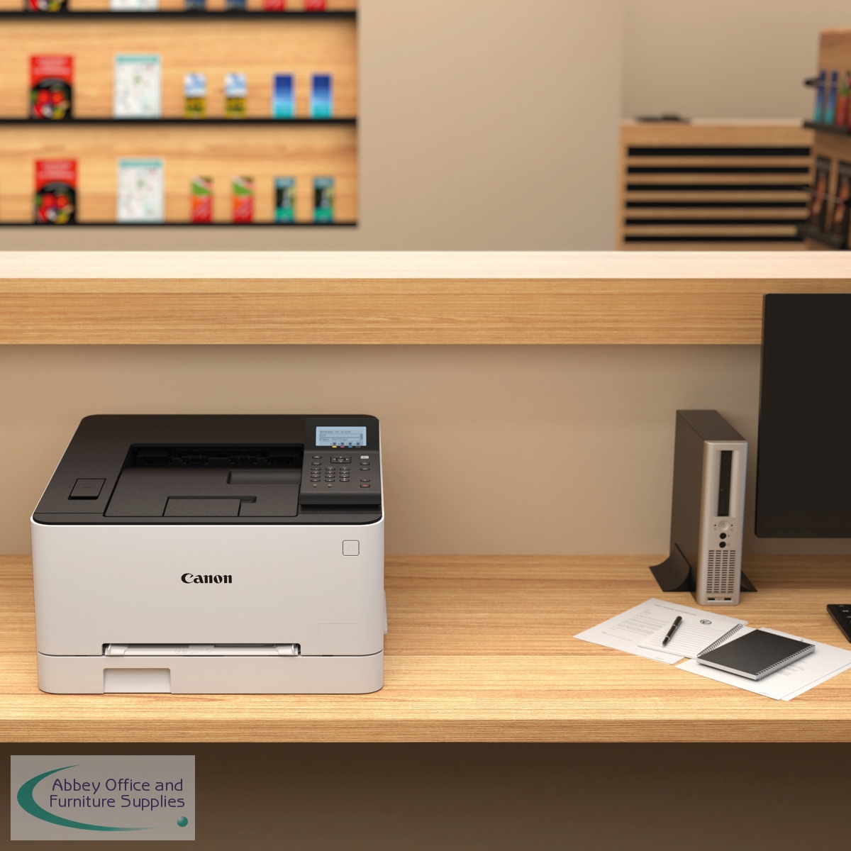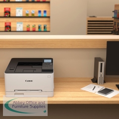 This Canon i-SENSYS LBP631Cw colour single-function A4 laser printer is designed for small to medium businesses or individuals working remotely. This compact, space saving printer is perfect for small working areas. Processor Speed: 800MHz x2, 1 GB Memory. Produces quality prints at 18 pages per minute. The warm up time is 13 seconds or less from power on, with first printout in 10.5 seconds or less. Print resolution is up to 1200 x 1200 dpi. Secure Print: Print from USB memory key (JPEG/TIFF/PDF); Canon PRINT Business app, iOS: AirPrint; Android; Mopria certified, Canon Print Service Plug-in. Control panel: 5 Line LCD, 3 LED (Job, Error, Energy saver), Buttons, 10-key numeric keypad. Printer is supplied with Black: 910 pages, C/M/Y: 680 pages starter cartridges.