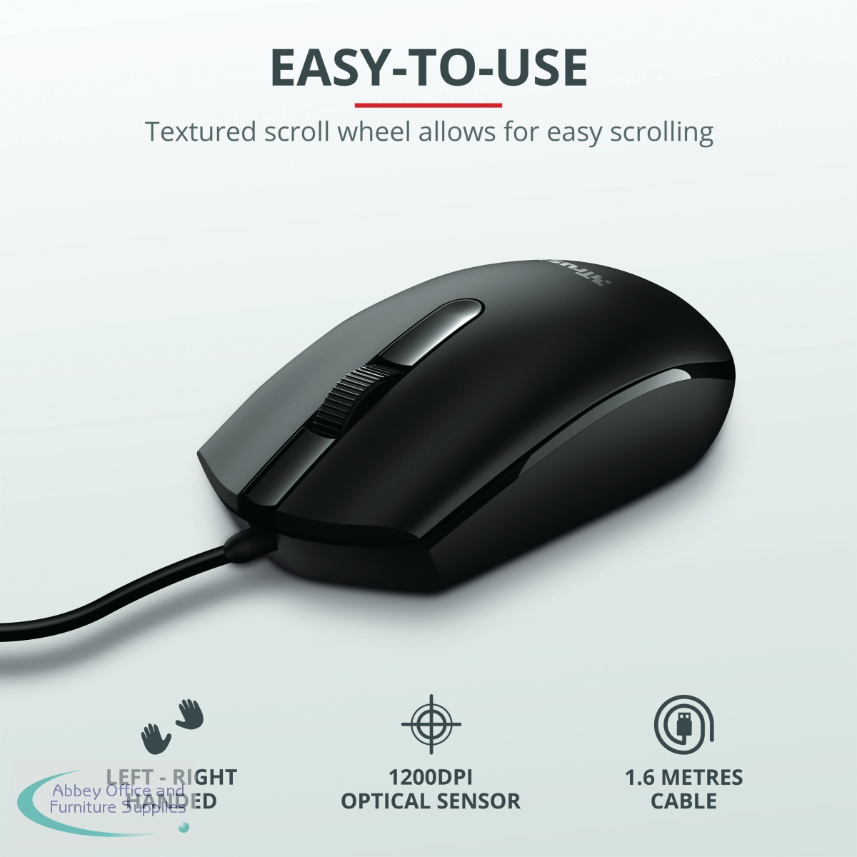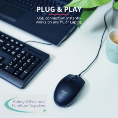 The Trust TM-101 Wired Mouse features a three-button configuration, scroll wheel and an optical sensor for reliable and responsive control. It offers multi-use plug and play operation with a standard wired USB connection. The mouse provides a comfortable fit in either hand.