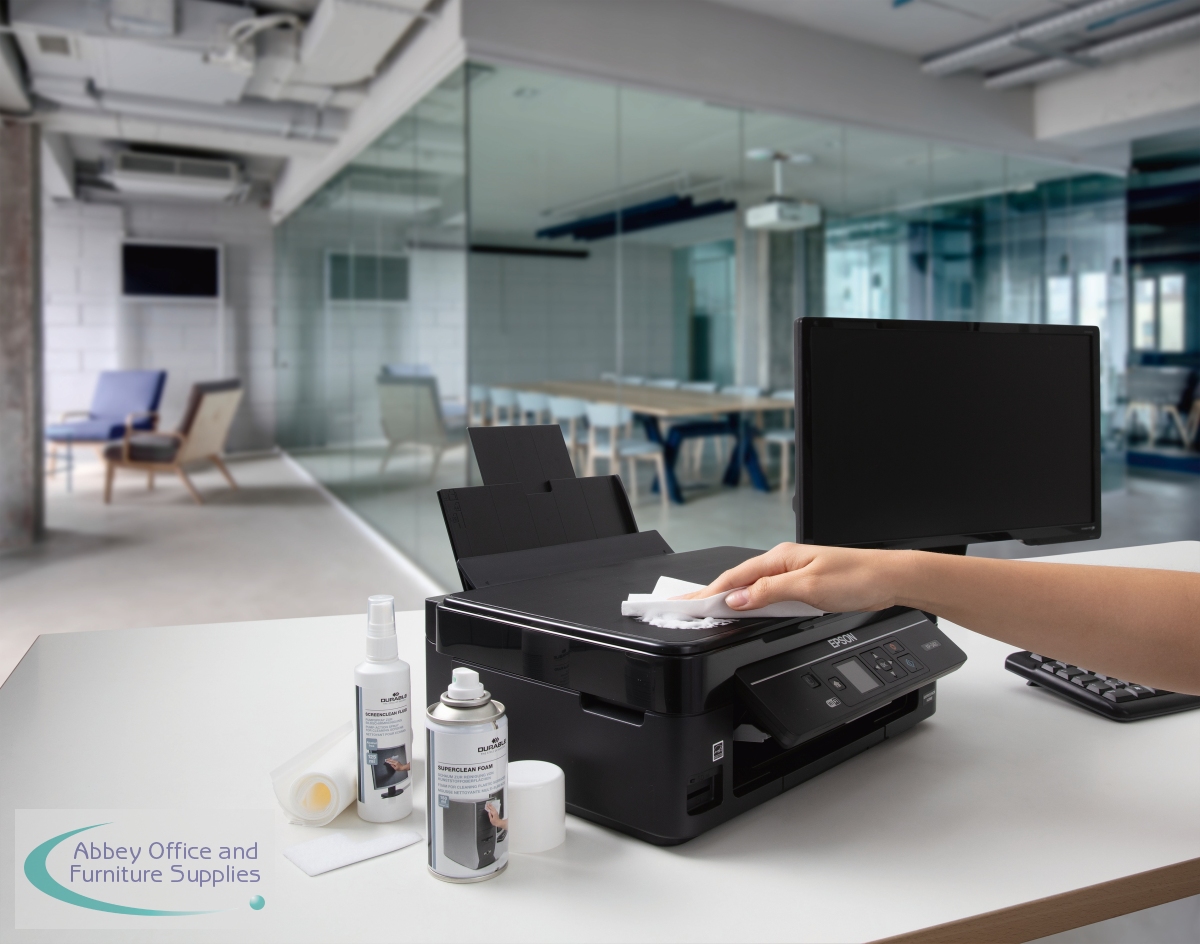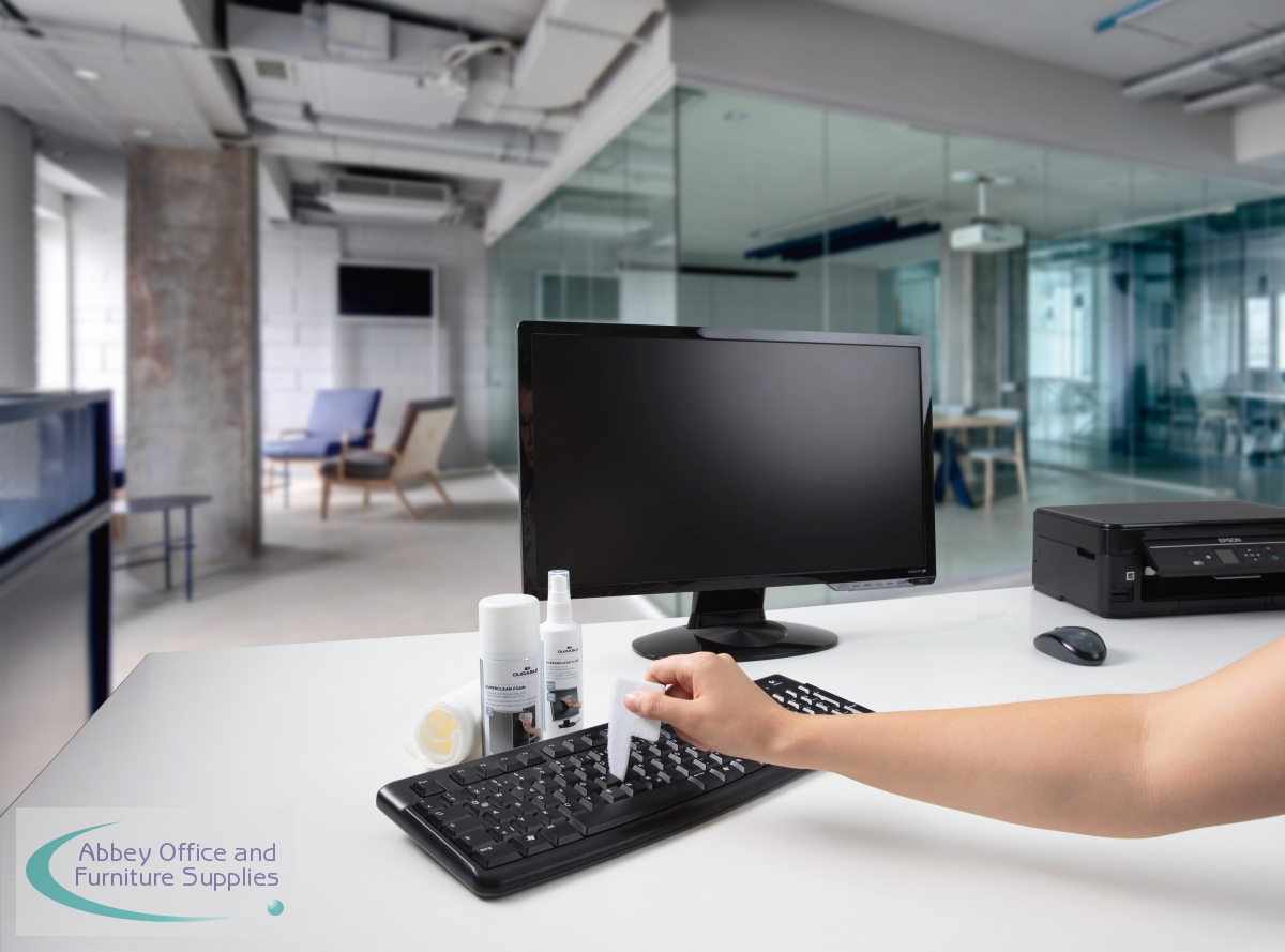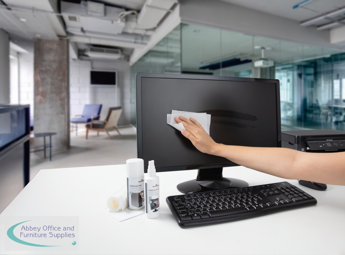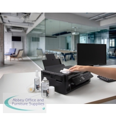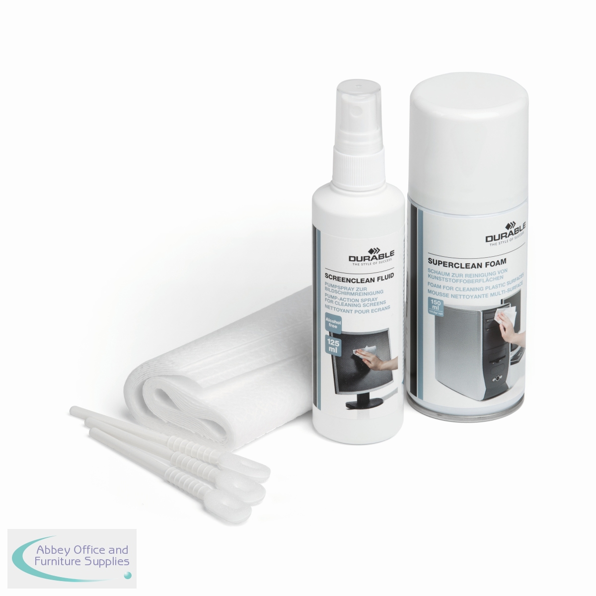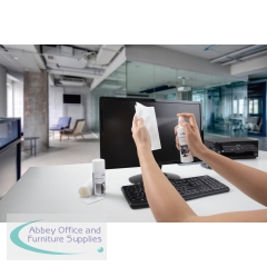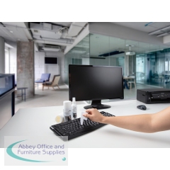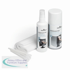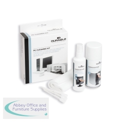Durable PC Cleaning Kit contains everything you need to keep your workstation clean and tidy. The kit includes 1 x 150ml bottle of surface cleaning foam, 1 x 125ml bottle of Screenclean fluid, 10 absorbent wipes and 1 keyboard cleaning tool. All of the cleaning fluids are alcohol-free and provide streak-free cleaning.