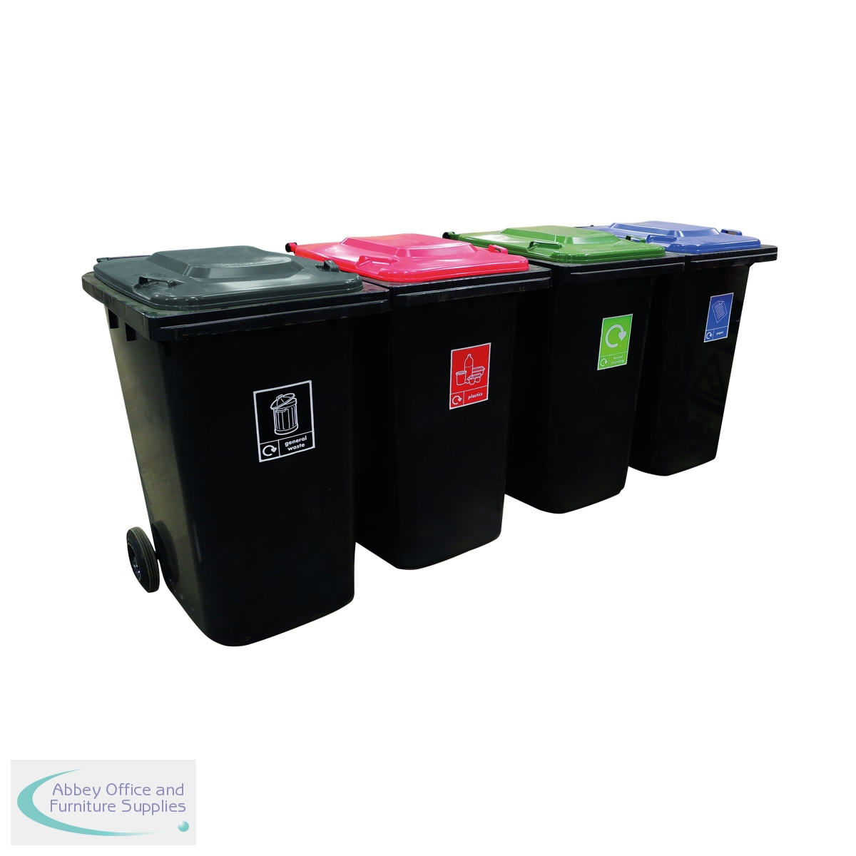 SBY02968 - VFM Wheelie Bins 240L With Colour Coded Lids and Recycling Stickers (Set of 4) 426069