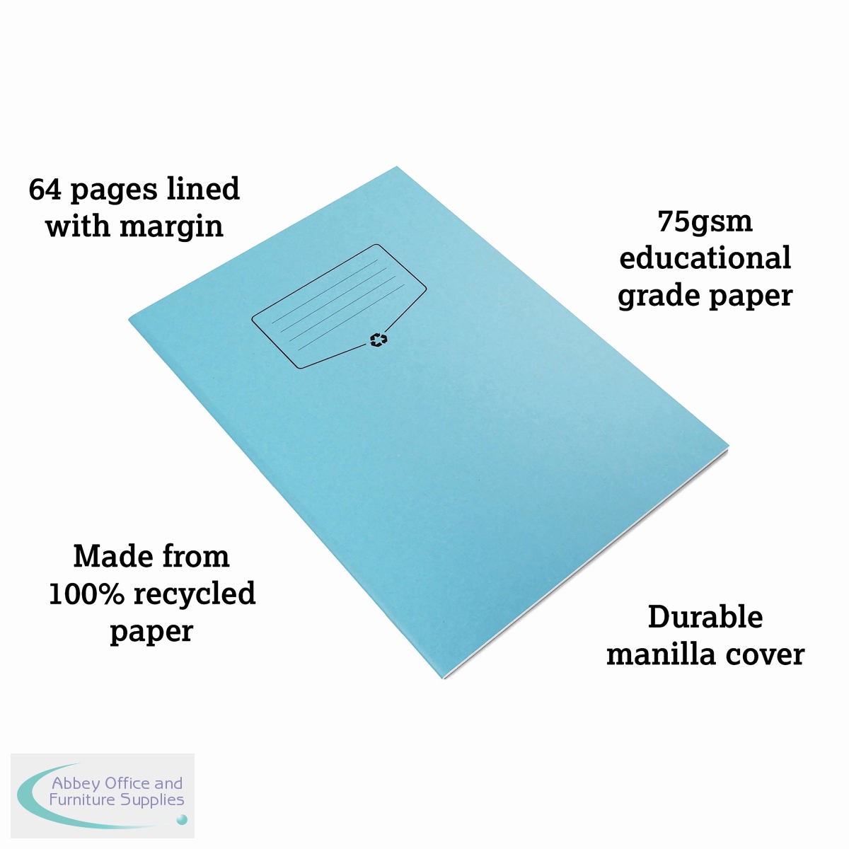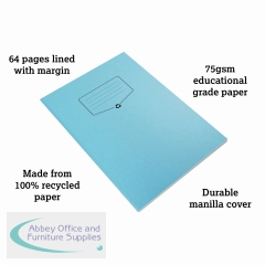 Made from 100% recycled paper, this Silvine exercise book features 64 pages, lined with margin and a light blue manilla cover for added protection. Measuring 297 x 210mm, the exercise book features feint ruled lines with margin on educational grade 75gsm paper which can be written on both sides of every page without ink bleed through. Perfect for studies, these climate friendly, 100% recycled paper exercise books help to encourage the next generation to think more consciously, making sustainable choices for their day-to-day classroom work. Supplied in a pack of 10.
