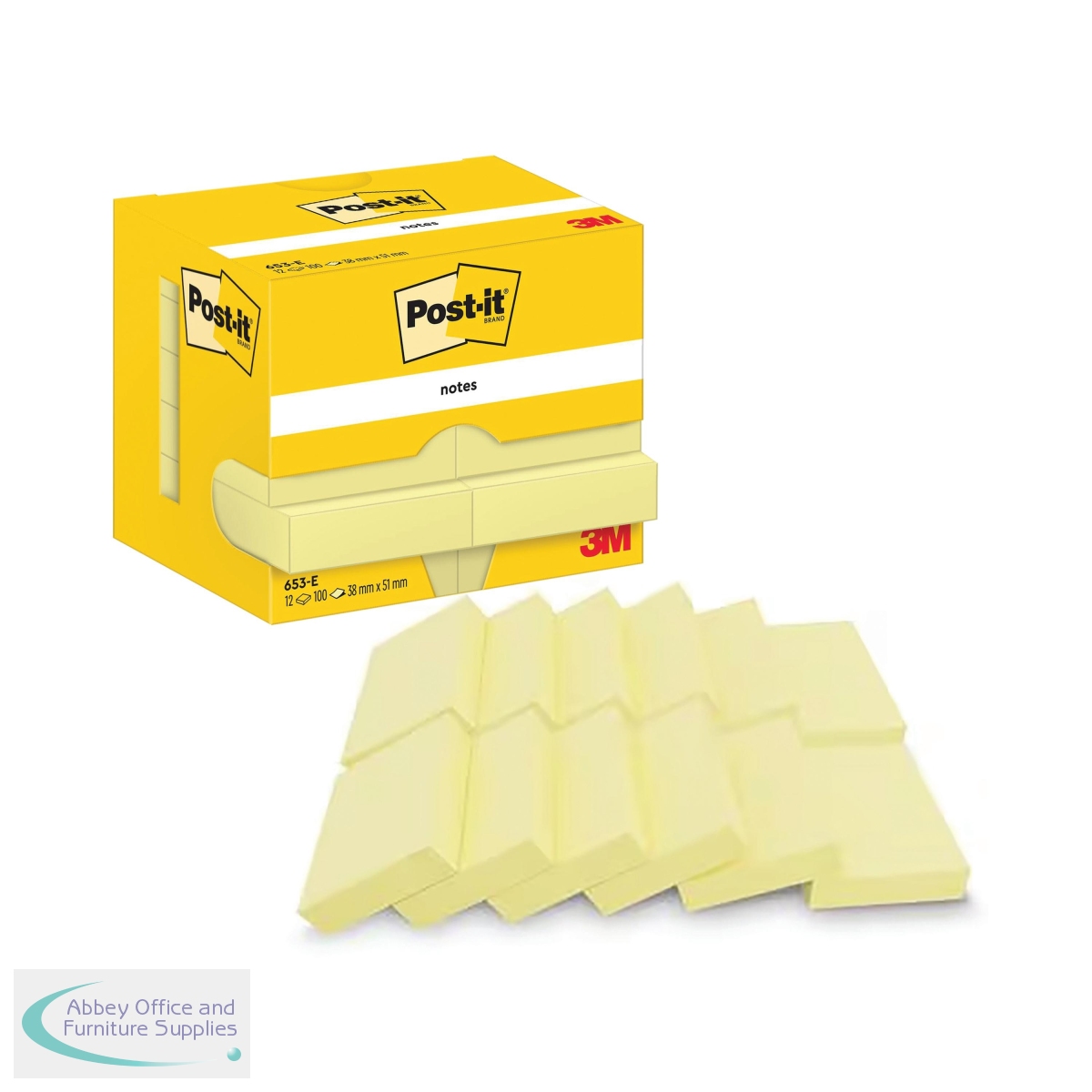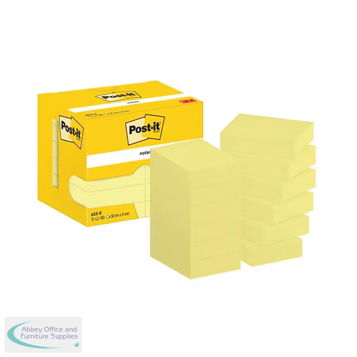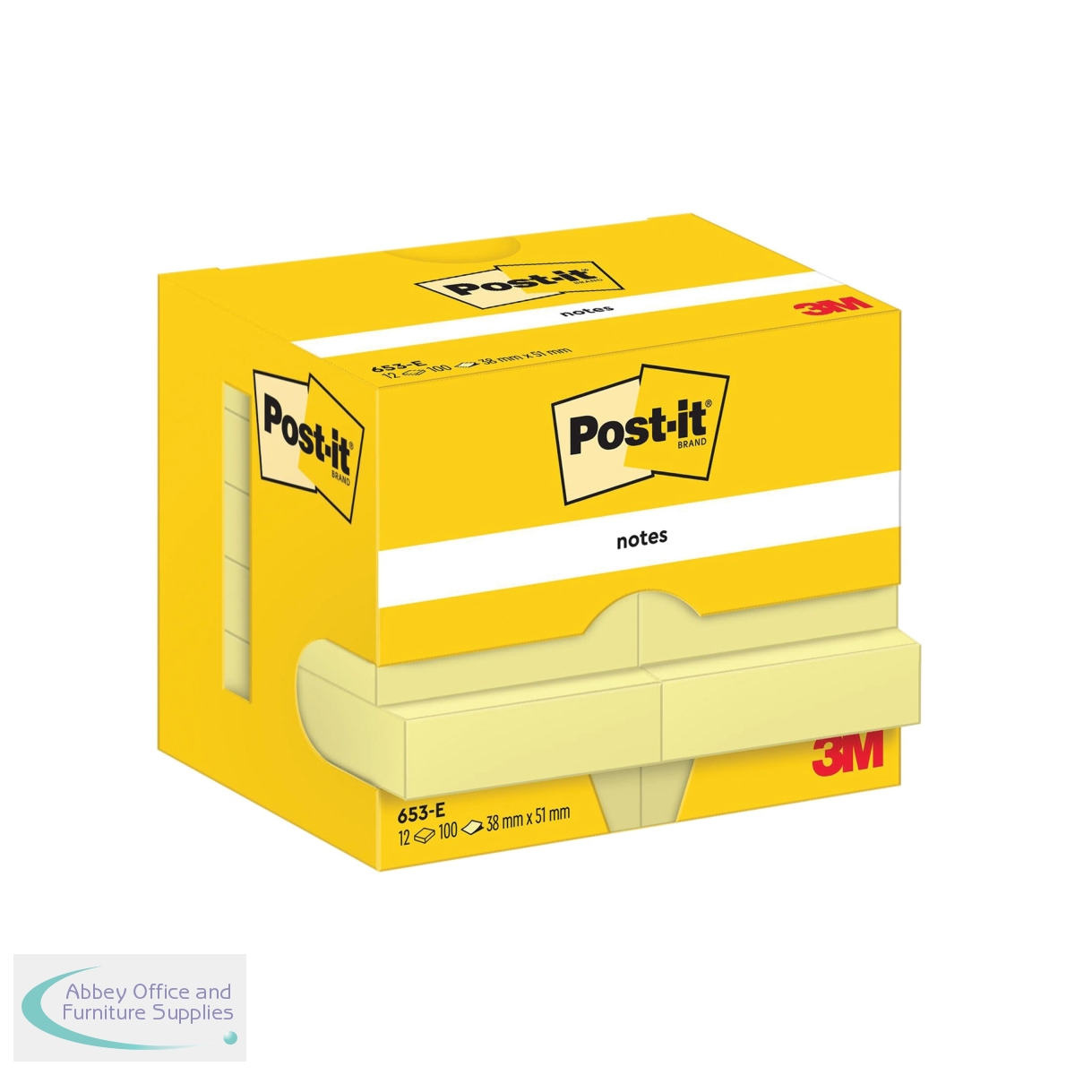 3M06590 - Post-it Notes 38x51mm 100 Sheets Canary Yellow (Pack of 12) 653-E